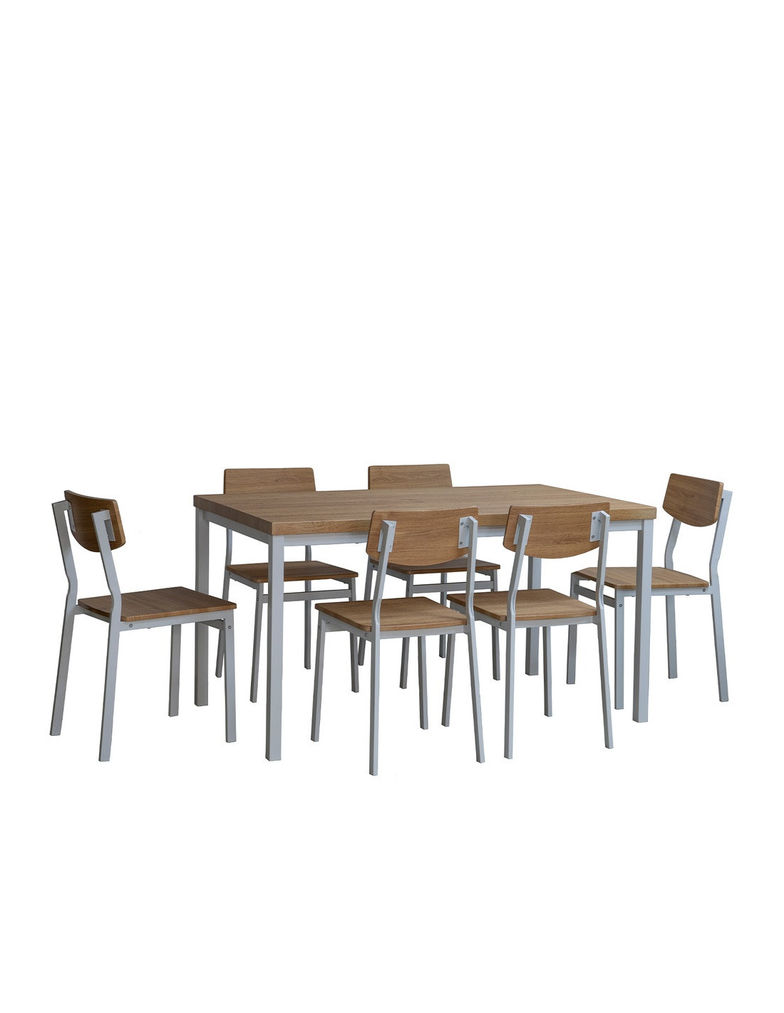El Juego comedor 6 sillas Alberta blanco está pensado para quienes necesitan mayor capacidad sin perder organización. Su formato para 6 personas permite distribuir mejor el espacio y crear un comedor funcional para reuniones familiares.
