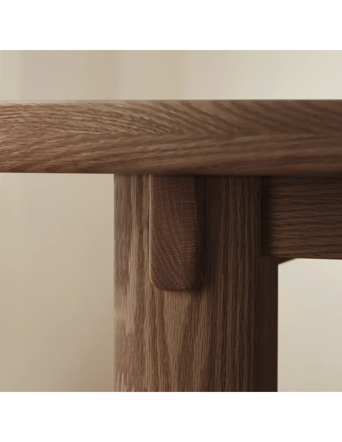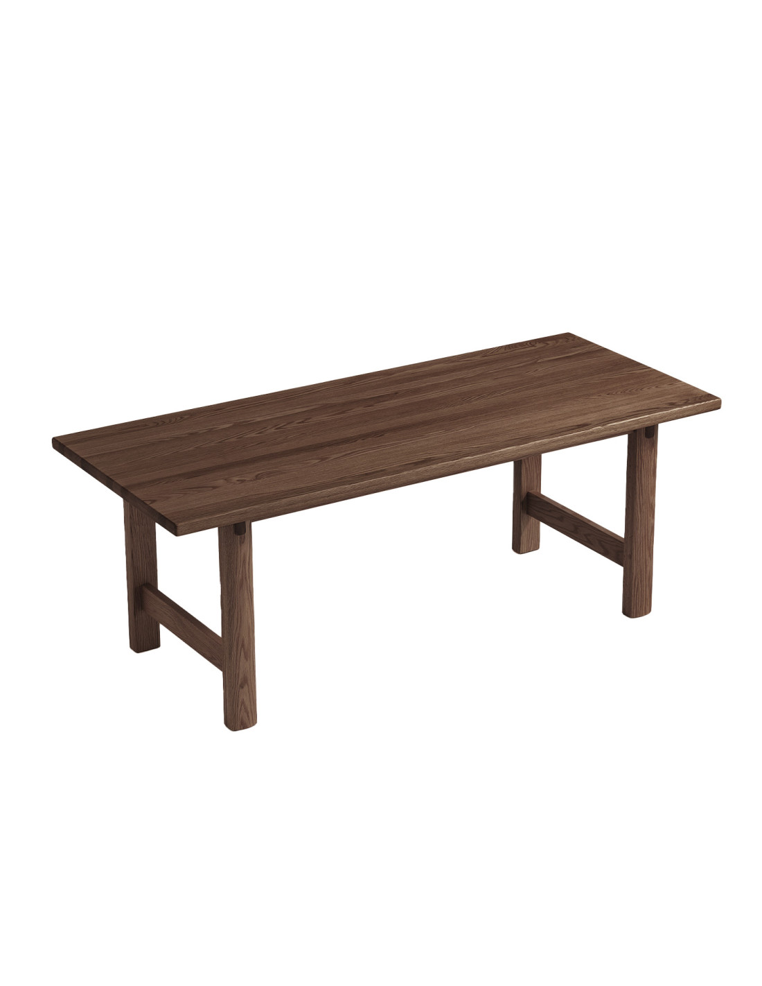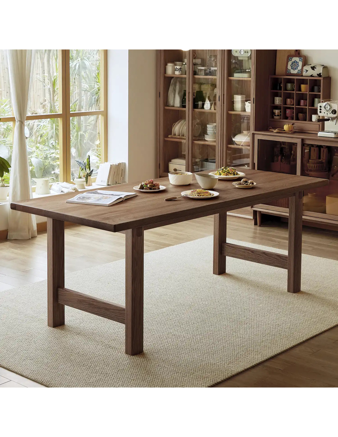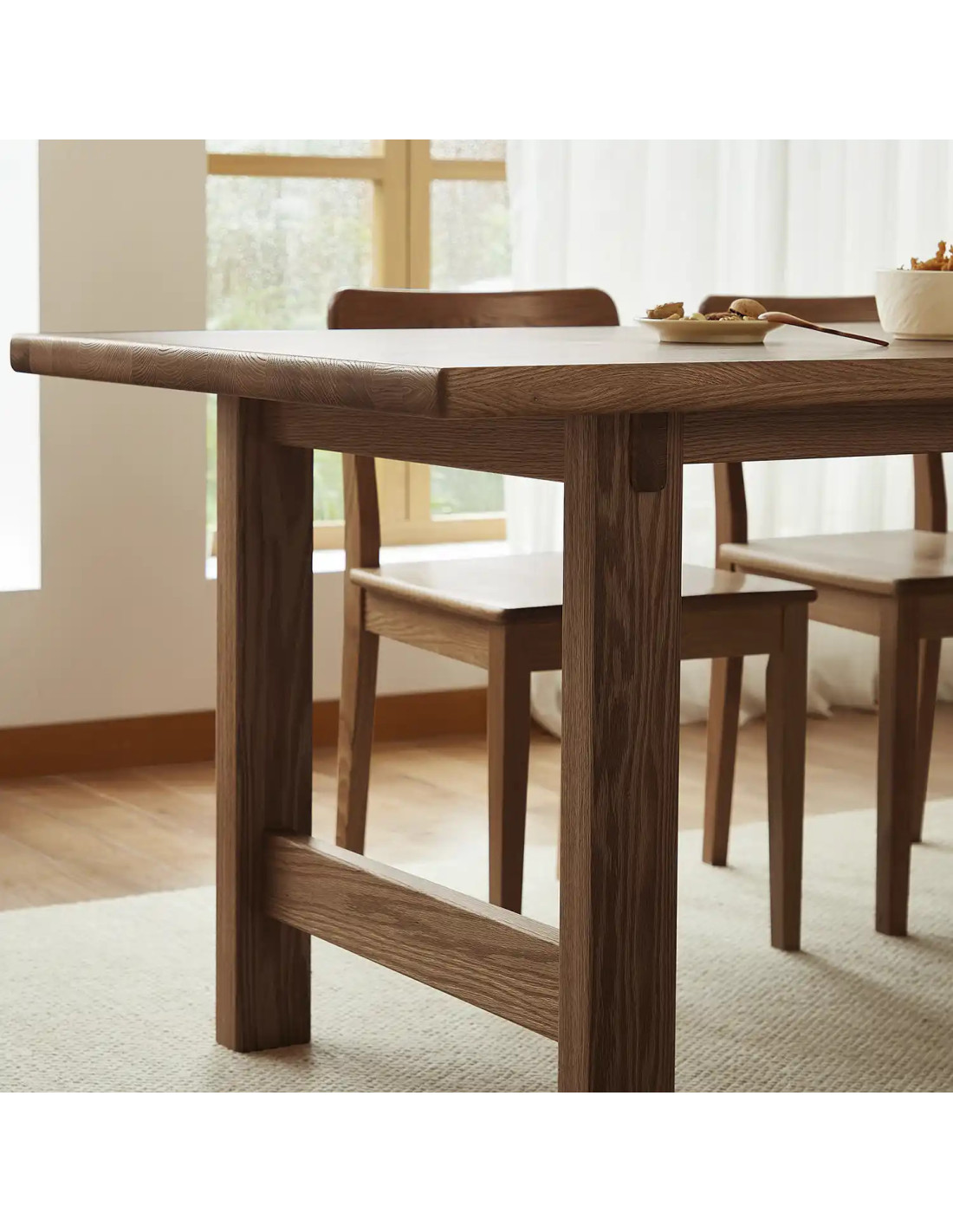 Mesa de comedor para 6 puestos en roble rojo norteamericano, con barra metálica de refuerzo, ideal para aportar calidez, estabilidad y estilo a tu comedor.