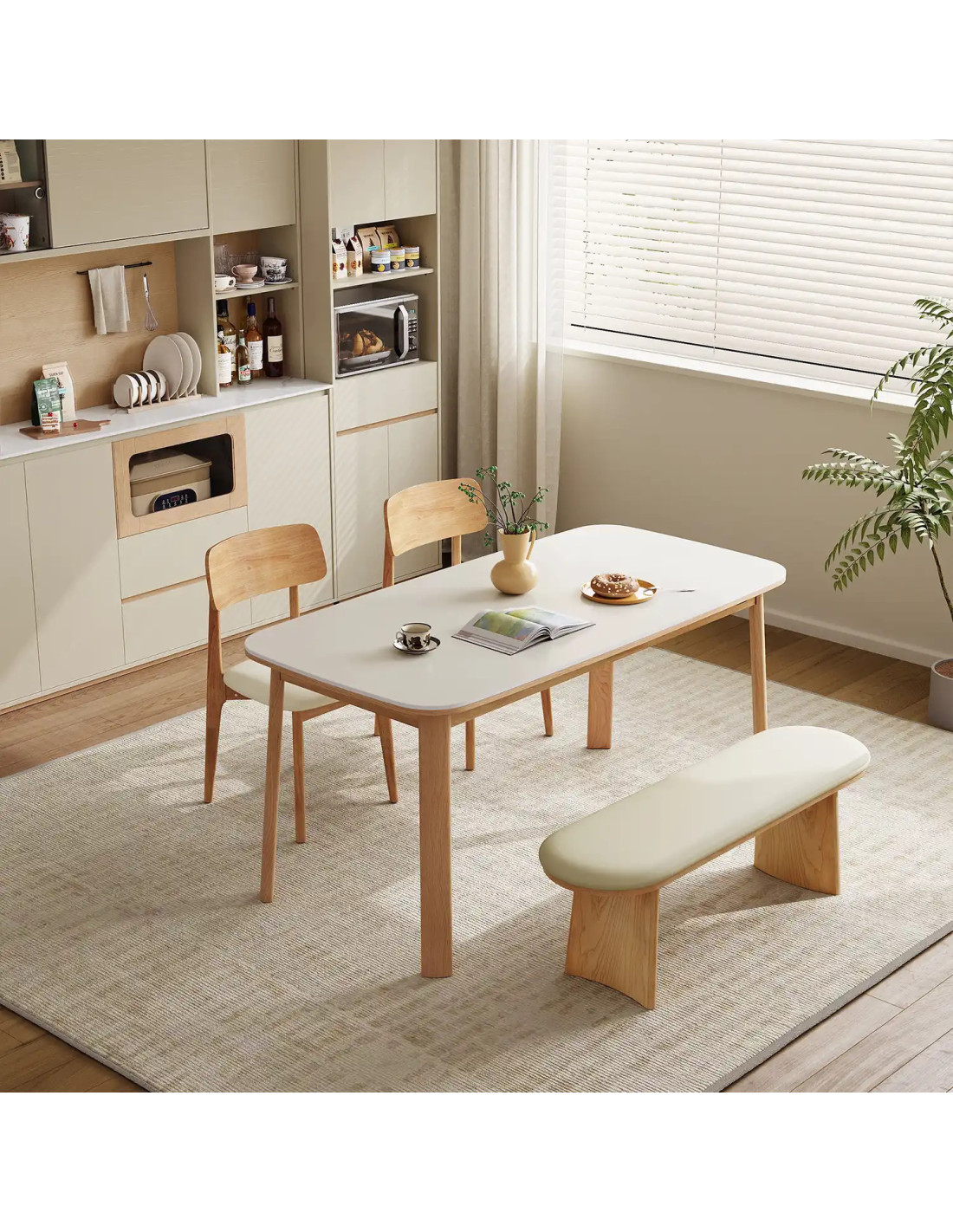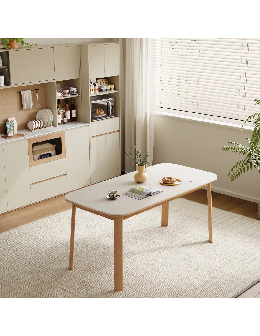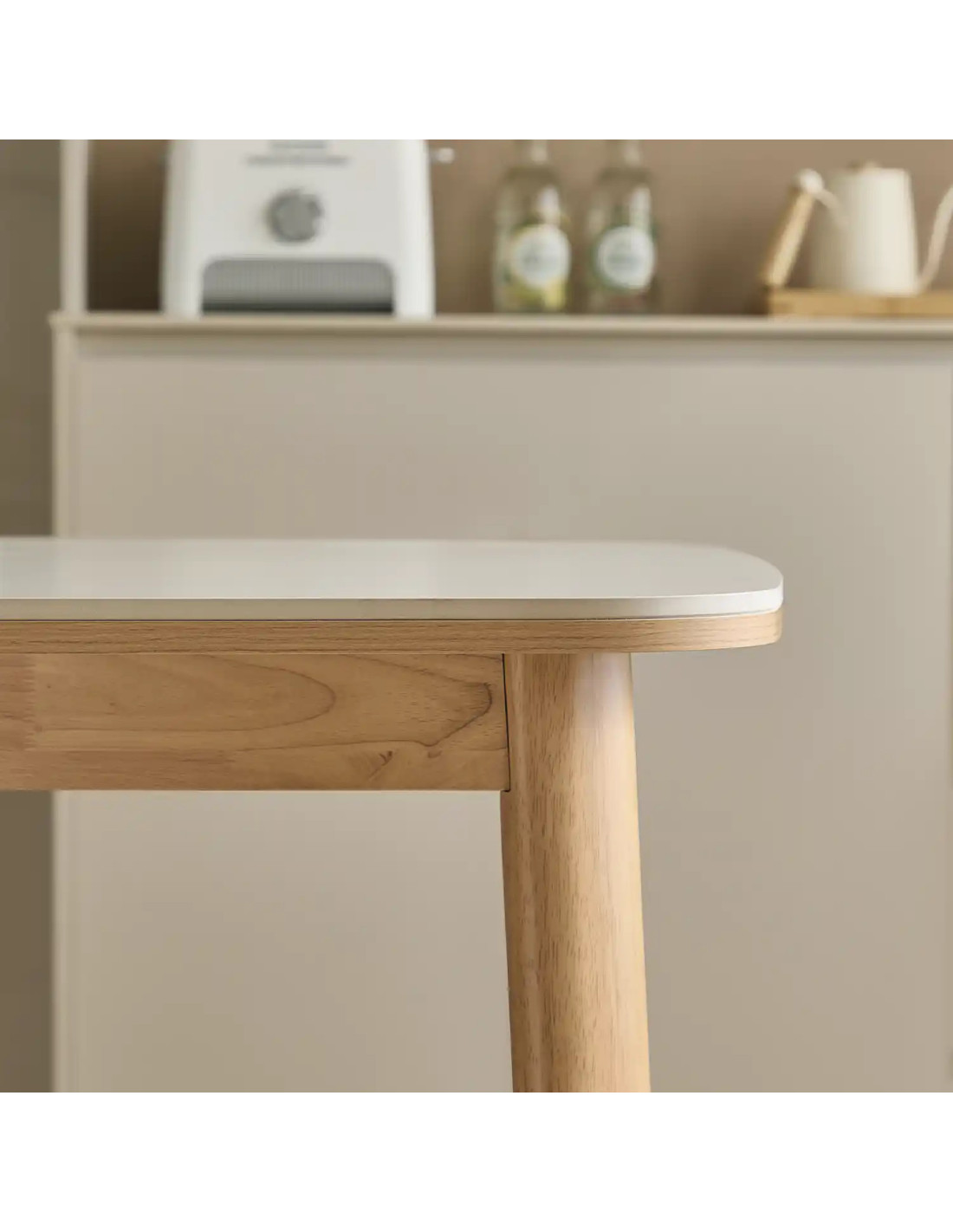 Cuenta con cubierta de piedra sinterizada y patas de madera de caucho, una combinación que entrega resistencia, estabilidad y una estética cálida y equilibrada. Su diseño de 4 puestos la convierte en una excelente opción para espacios funcionales que buscan unir estilo y practicidad en el día a día.