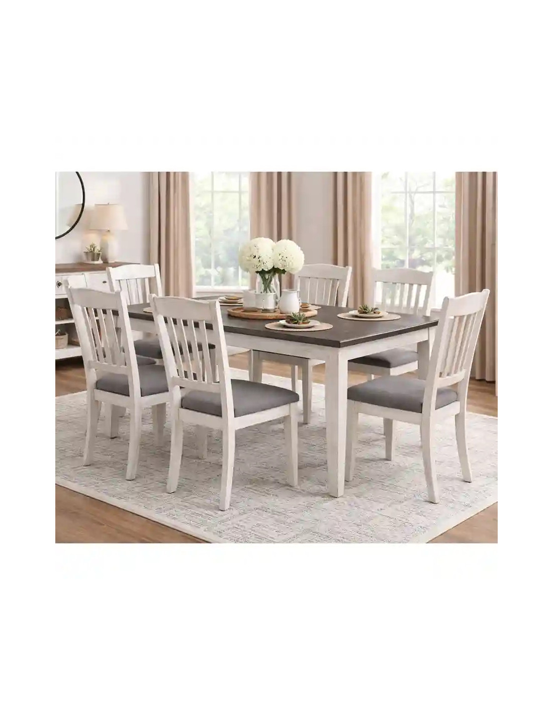 El Juego Comedor 6 Sillas Dovie, con mesa y 6 sillas incluidas, está pensado para reunir a la familia y crear momentos que se disfrutan con calma. Su diseño moderno en color blanco aporta luminosidad y amplitud, mientras sus líneas suaves y detalles cálidos convierten cada comida, conversación o celebración en una experiencia más acogedora.
