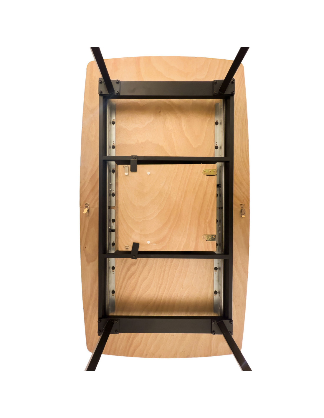 Mesa comedor extensible Marc con cubierta MDF foliado y patas metálicas. Diseño moderno y funcional, ideal para reuniones familiares y celebraciones con estilo.