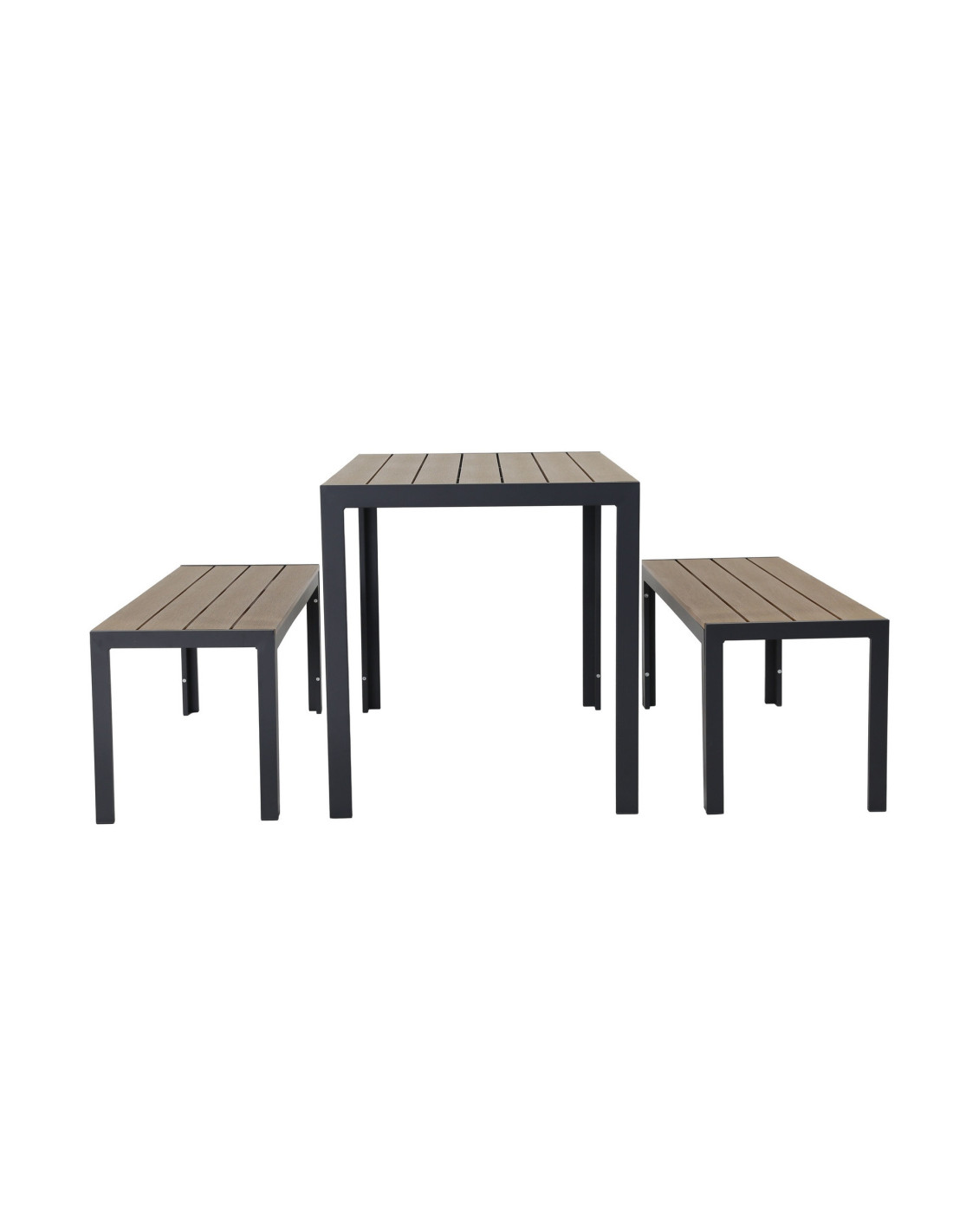 Juego comedor terraza 2 bancos Elko gris oscuro
