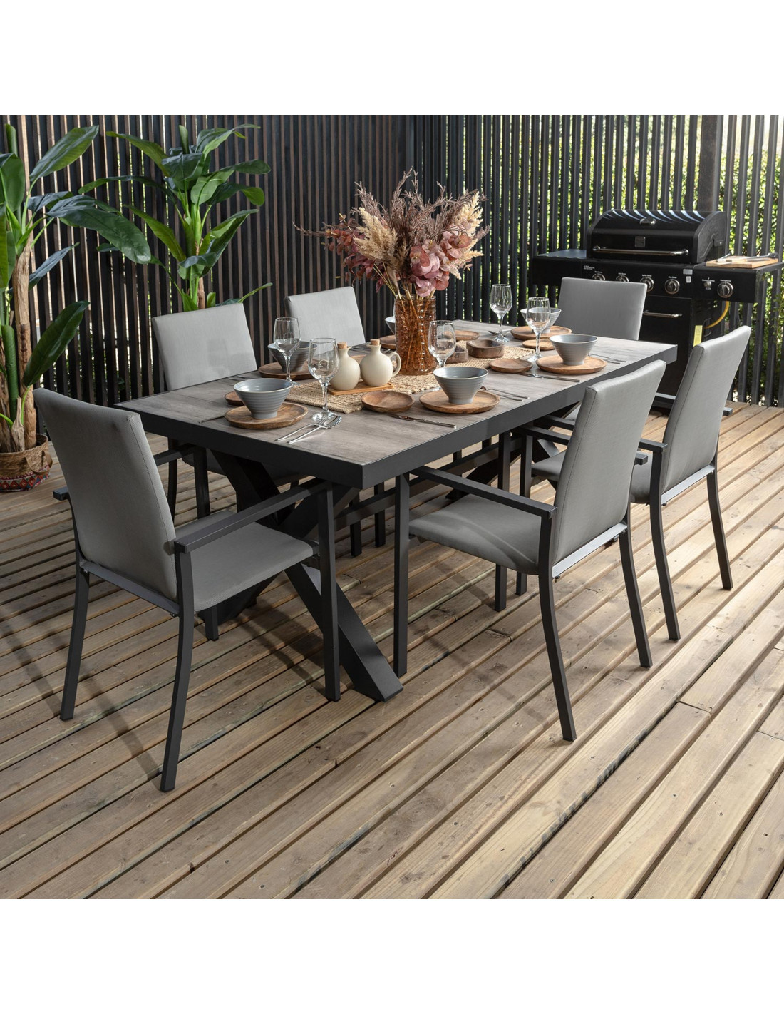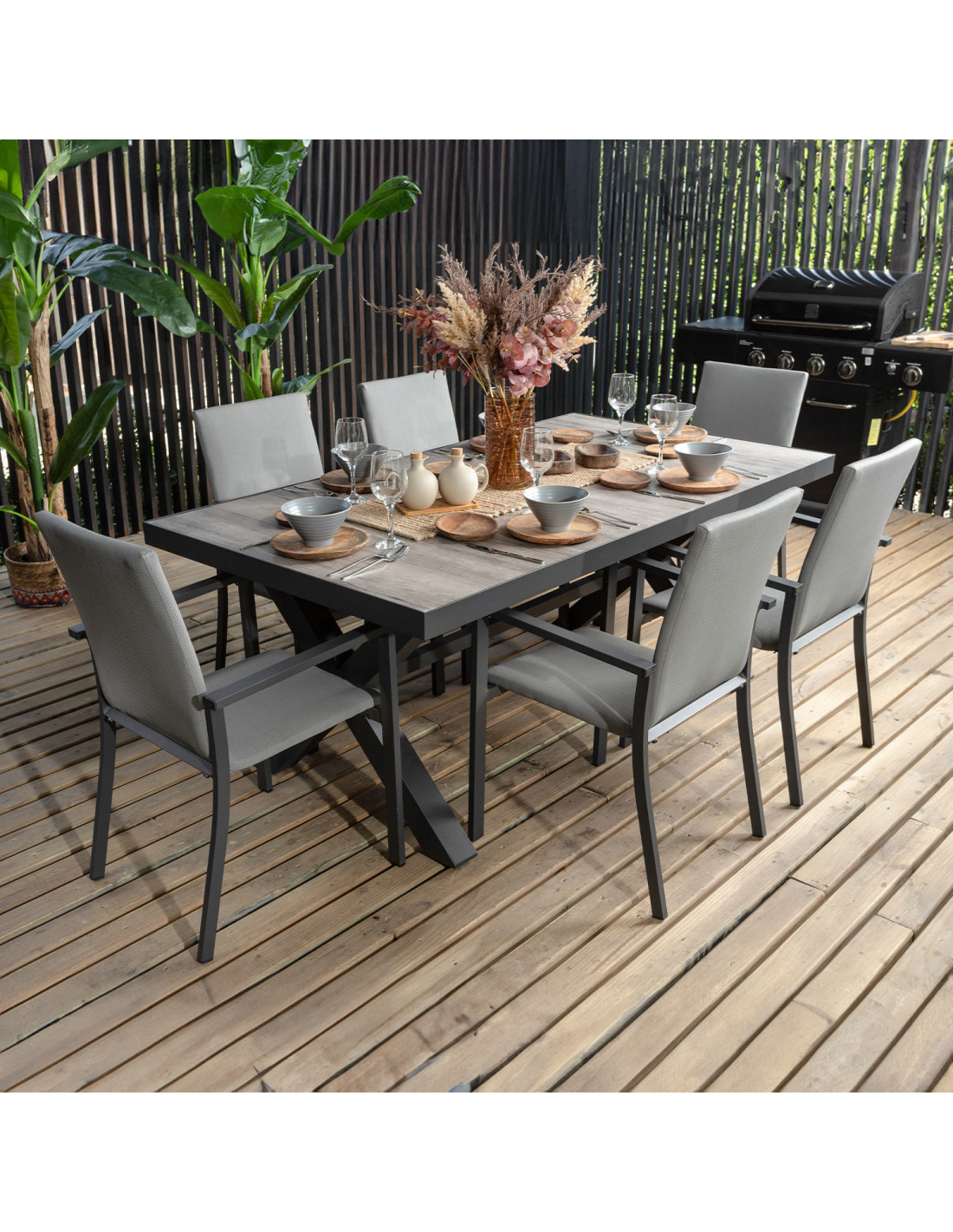 Sofisticada y resistente, la mesa Ravello cerámica gris es ideal para compartir al aire libre con estilo.