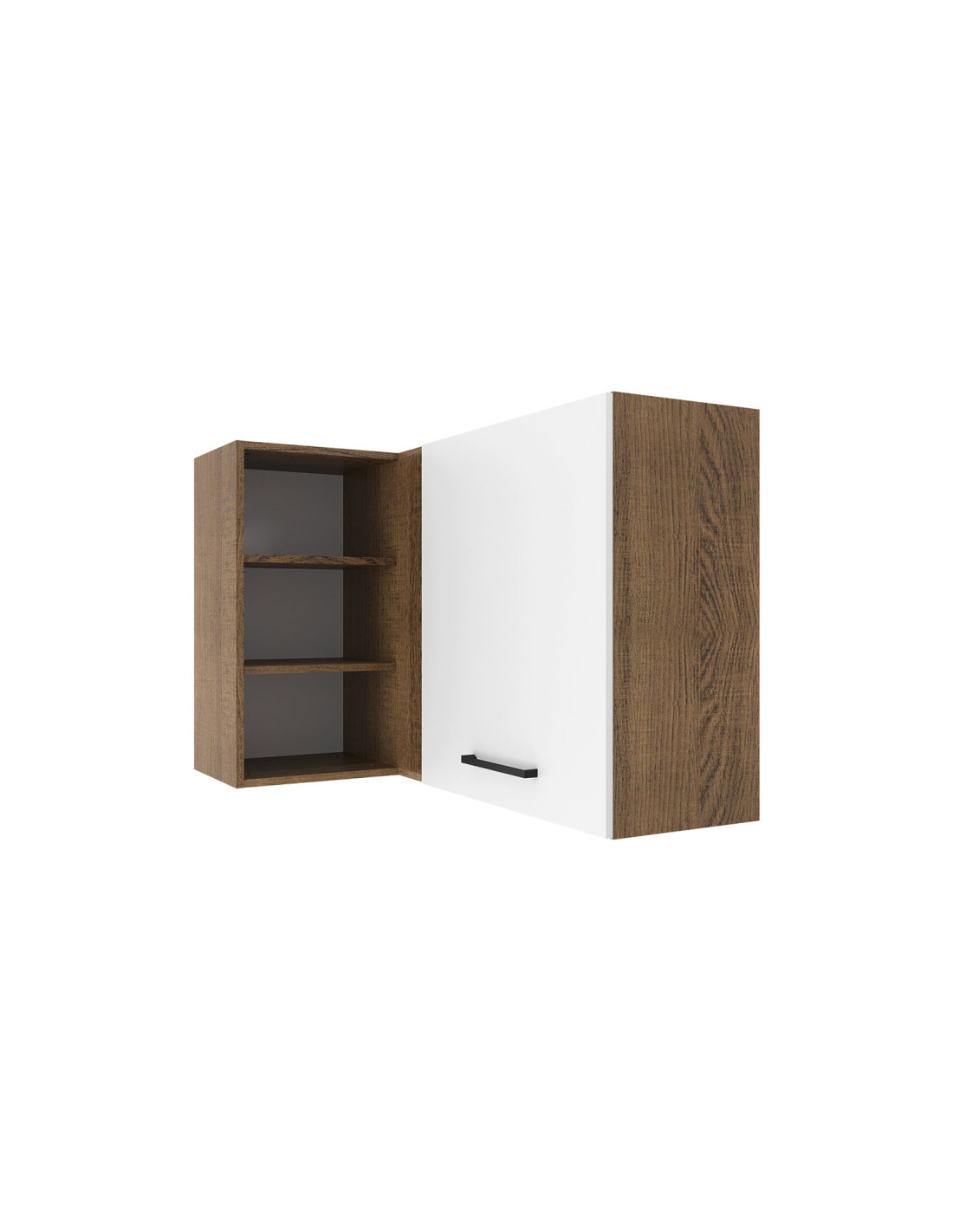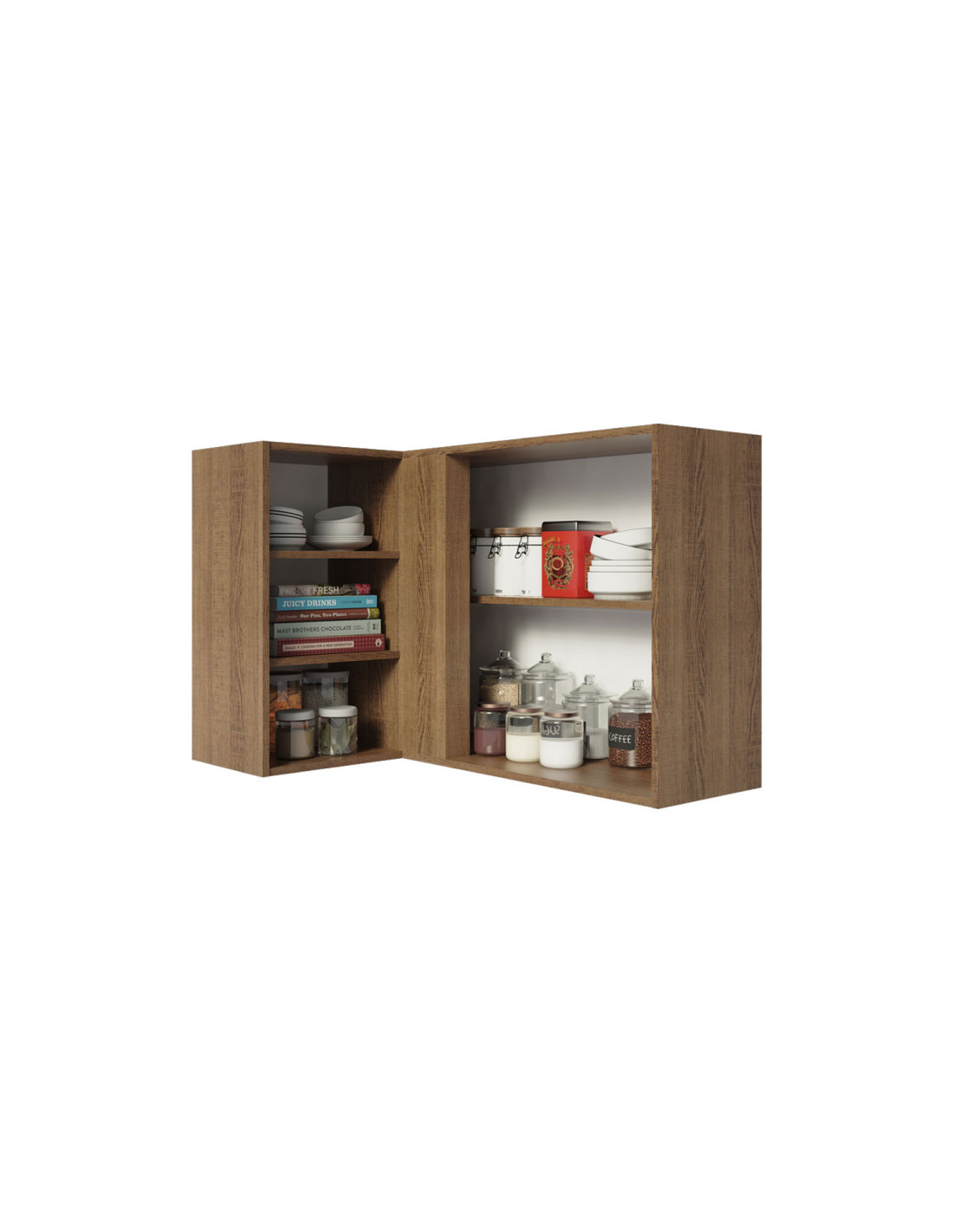 El Aéreo esquinero Agata blanco 1 puerta 60cm de Madesa es la opción perfecta para optimizar el espacio en tu cocina. Su diseño esquinero maximiza cada rincón, creando más capacidad para organizar utensilios, vajilla y otros accesorios. Con una puerta de cierre suave gracias a la bisagra con amortiguación y manilla de aluminio, ofrece un acceso cómodo y elegante. La estructura en madera rústica y puerta blanca, protegida por pintura Poliéster de 7 capas, garantiza resistencia al alcohol, agua y calor. Compatible con los módulos inferiores y superiores de la línea Agata, este mueble se adapta a tu cocina, creando un ambiente armonioso y funcional.
