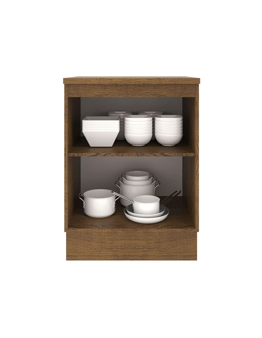 La Base cocina Agata blanco 60cm es la combinación perfecta de estilo y funcionalidad para tu cocina. Con una puerta, un estante y dos amplios nichos, ofrece el espacio ideal para organizar ollas, utensilios, vajilla y productos de limpieza. Su estructura en madera rústica y puerta blanca, protegida por una pintura Poliéster de 7 capas, garantiza resistencia al alcohol, agua y calor. Además, cuenta con manilla de aluminio, bisagras metálicas con amortiguación, patas regulables de PVC y rodapié extraíble. Esta encimera versátil se adapta fácilmente a otros módulos de la línea Agata, brindando una solución práctica y elegante para tu hogar.