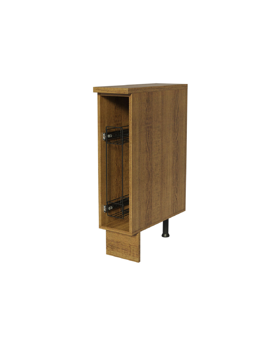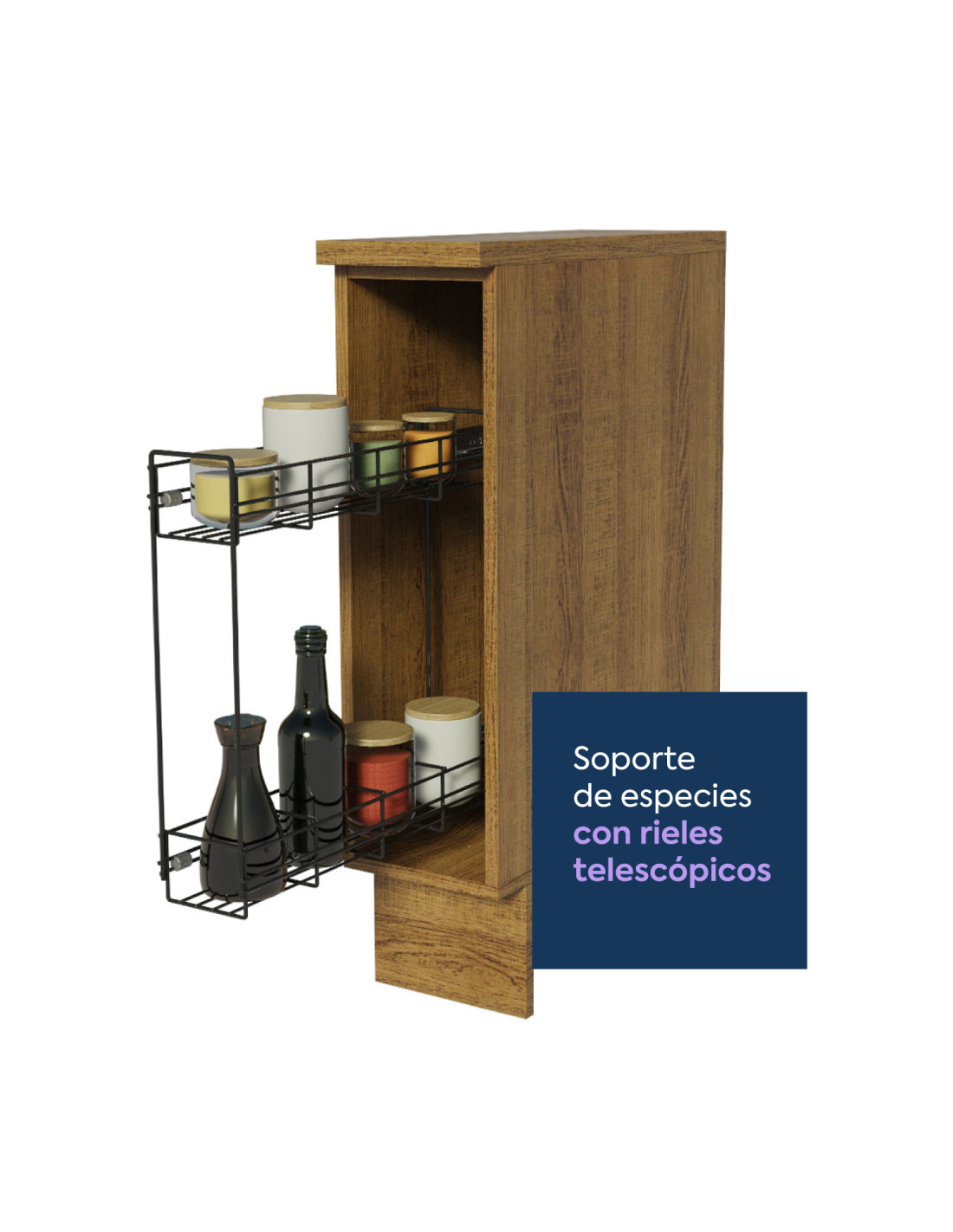 La Base Especiero Agata - Stella 20 cm es la solución perfecta para mantener tu cocina organizada y funcional. Su diseño innovador incluye un organizador de especias de metal con corredera telescópica de apertura total, lo que facilita el acceso a tus ingredientes favoritos. Con una tapa de MDP y patas regulables en PVC, este especiero combina comodidad y practicidad. Su acabado en madera rústica, junto con la pintura Poliéster ecológica, asegura durabilidad y protección ambiental. Ideal para combinar con otros módulos de las líneas Agata y Stella, creando una cocina armoniosa y accesible para el día a día.