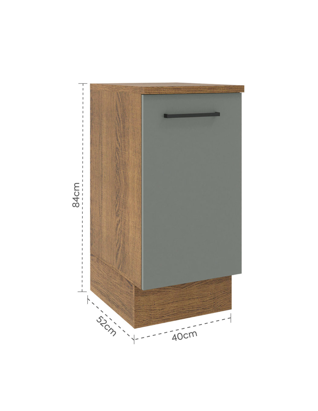 La Base Cocina Agata Gris 40 cm es el equilibrio perfecto entre funcionalidad y diseño. Con una puerta y un espacio interno dividido en estante y dos nichos, es ideal para organizar desde utensilios y vajilla hasta productos de limpieza. Su estructura de madera rústica, combinada con una puerta gris y una pintura ecológica de siete capas, aporta durabilidad y estilo. Las patas regulables y el rodapié extraíble facilitan su mantenimiento, mientras que su modularidad permite integrarlo con otros módulos Agata, creando la cocina perfecta para tu hogar.