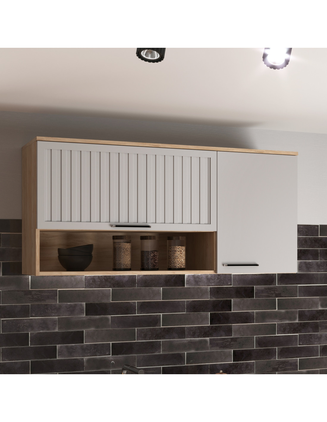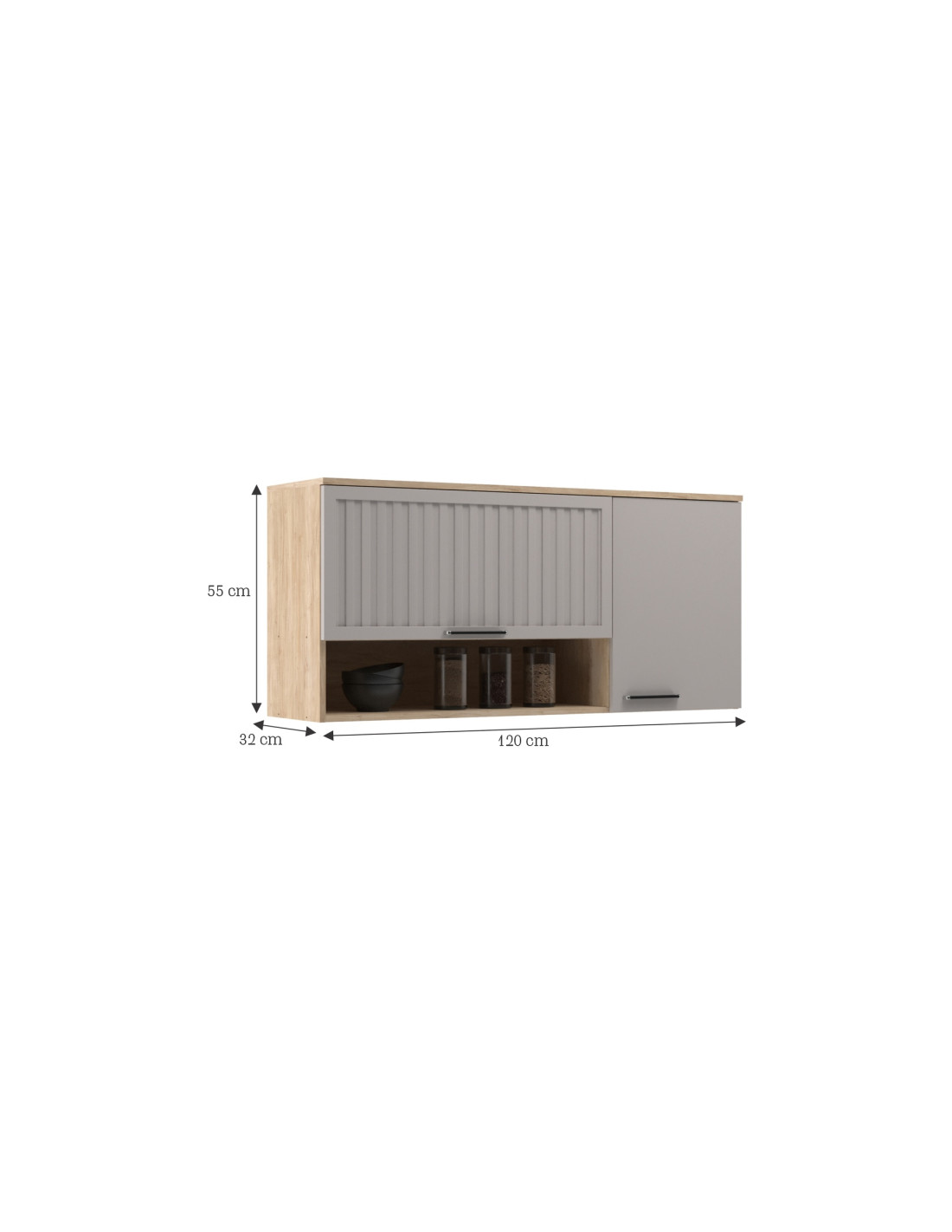 Transforma tu cocina con el Aéreo Cocina Amalia de 2 puertas, fabricado con resistentes paneles de MDP. Sus manillas de aluminio negro con puntas cromadas y un nicho integrado añaden un toque de elegancia y funcionalidad. Ideal para quienes buscan maximizar el espacio sin sacrificar el diseño. Este mueble es la perfecta combinación de practicidad y estilo contemporáneo, creando una cocina organizada y sofisticada.