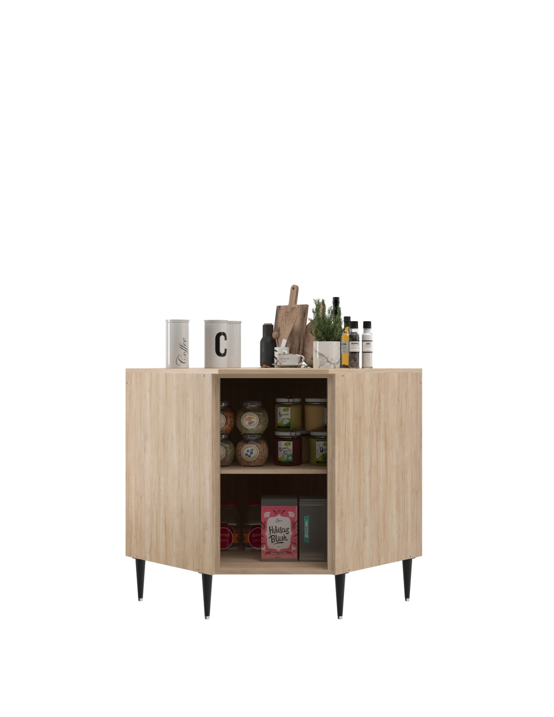 De líneas suaves y tonos cálidos, la Base Amalia optimiza la esquina con estilo y funcionalidad. Ideal para cocinas acogedoras.