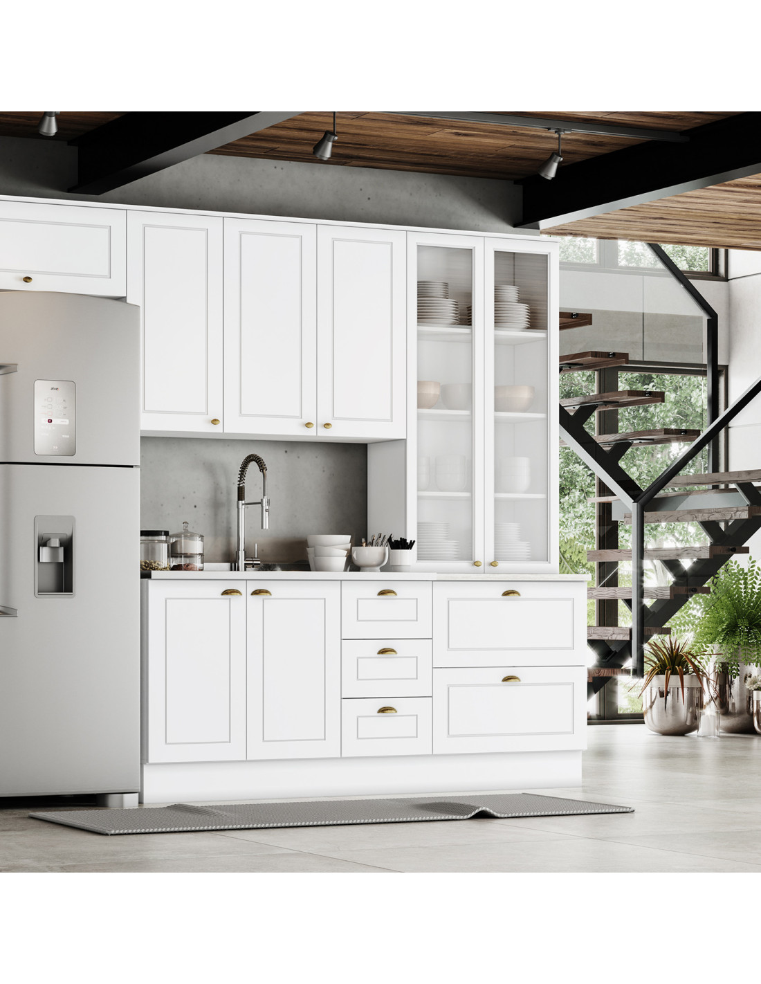 El aéreo Americana blanco 120 cm destaca por su diseño limpio y equilibrado, ideal para cocinas amplias o de concepto abierto. Su superficie blanca aporta frescura y orden, mientras que su estructura sólida ofrece amplio espacio de almacenamiento. Inspirado en líneas minimalistas, refleja el estilo moderno que prioriza la armonía visual y la funcionalidad. Cada detalle está pensado para integrar confort, diseño y durabilidad, creando un ambiente luminoso y acogedor donde el espacio cobra sentido a través de la simplicidad y la elegancia.
