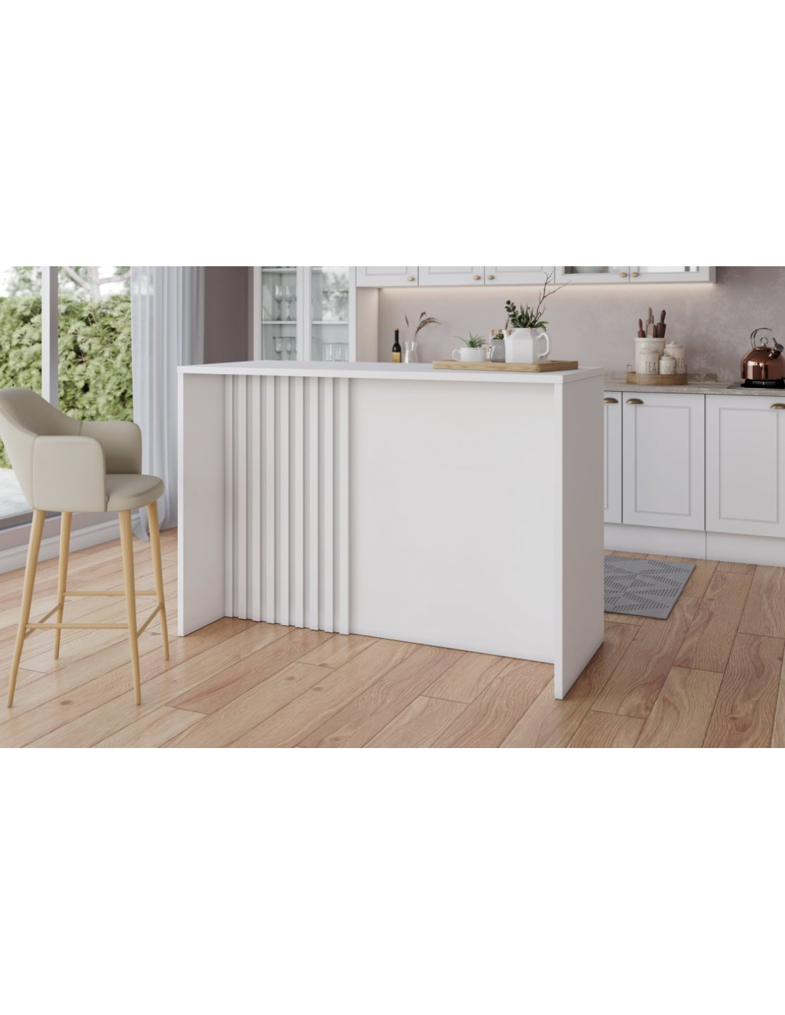 La isla comedor Americana en color blanco combina elegancia funcional y diseño moderno. Su acabado liso y estructura robusta ofrecen un punto de encuentro ideal en la cocina o comedor, fusionando estilo y practicidad. El tono blanco aporta luminosidad y una sensación de amplitud, adaptándose a diferentes estilos decorativos. Ideal para quienes disfrutan de espacios abiertos y armoniosos, transforma la rutina diaria en un momento de encuentro con diseño y confort.