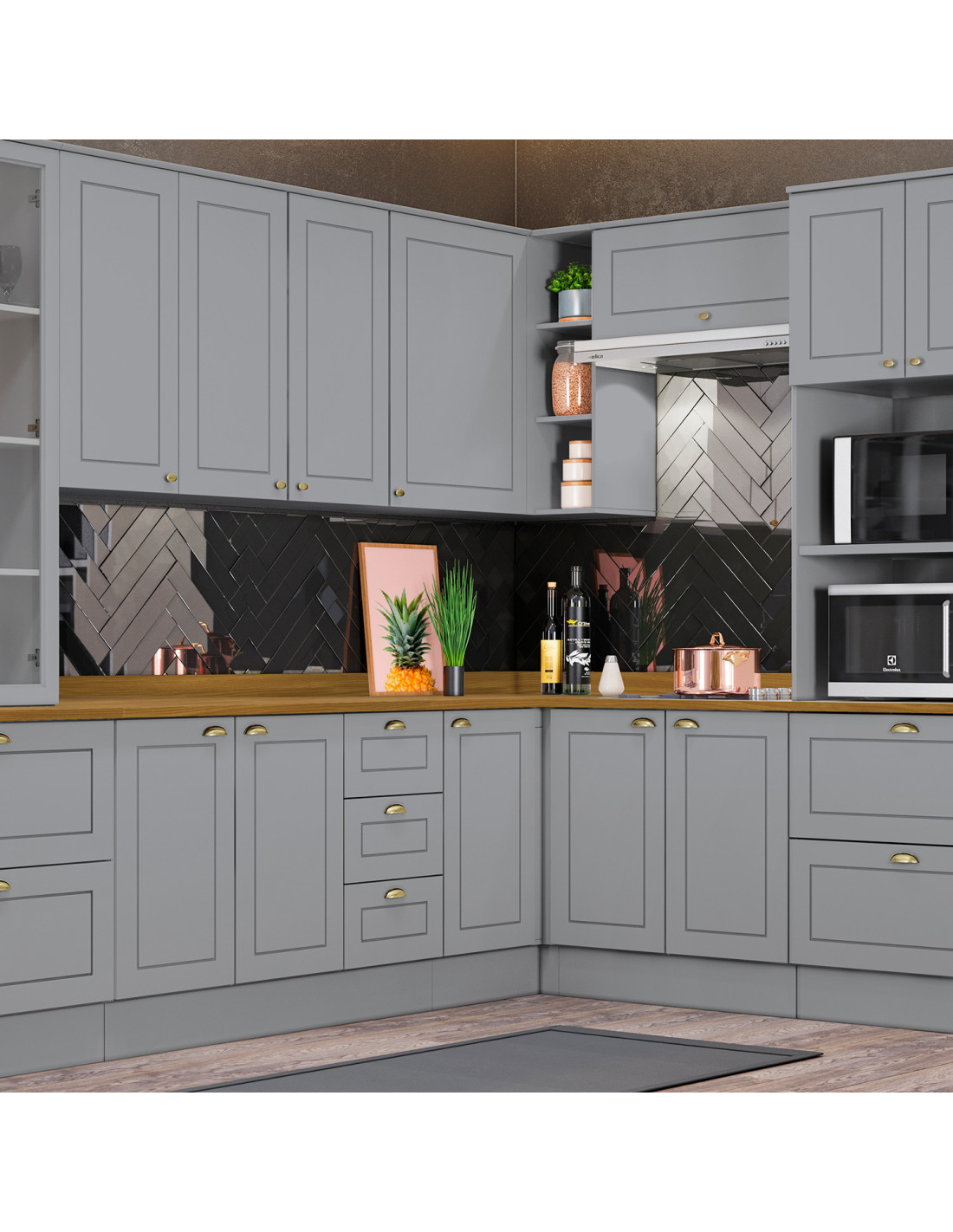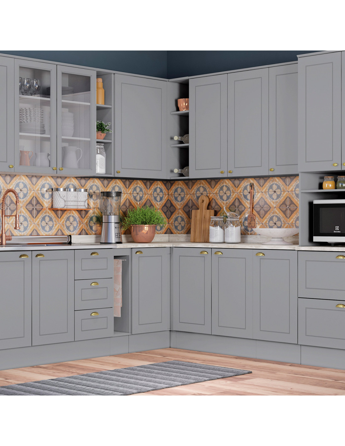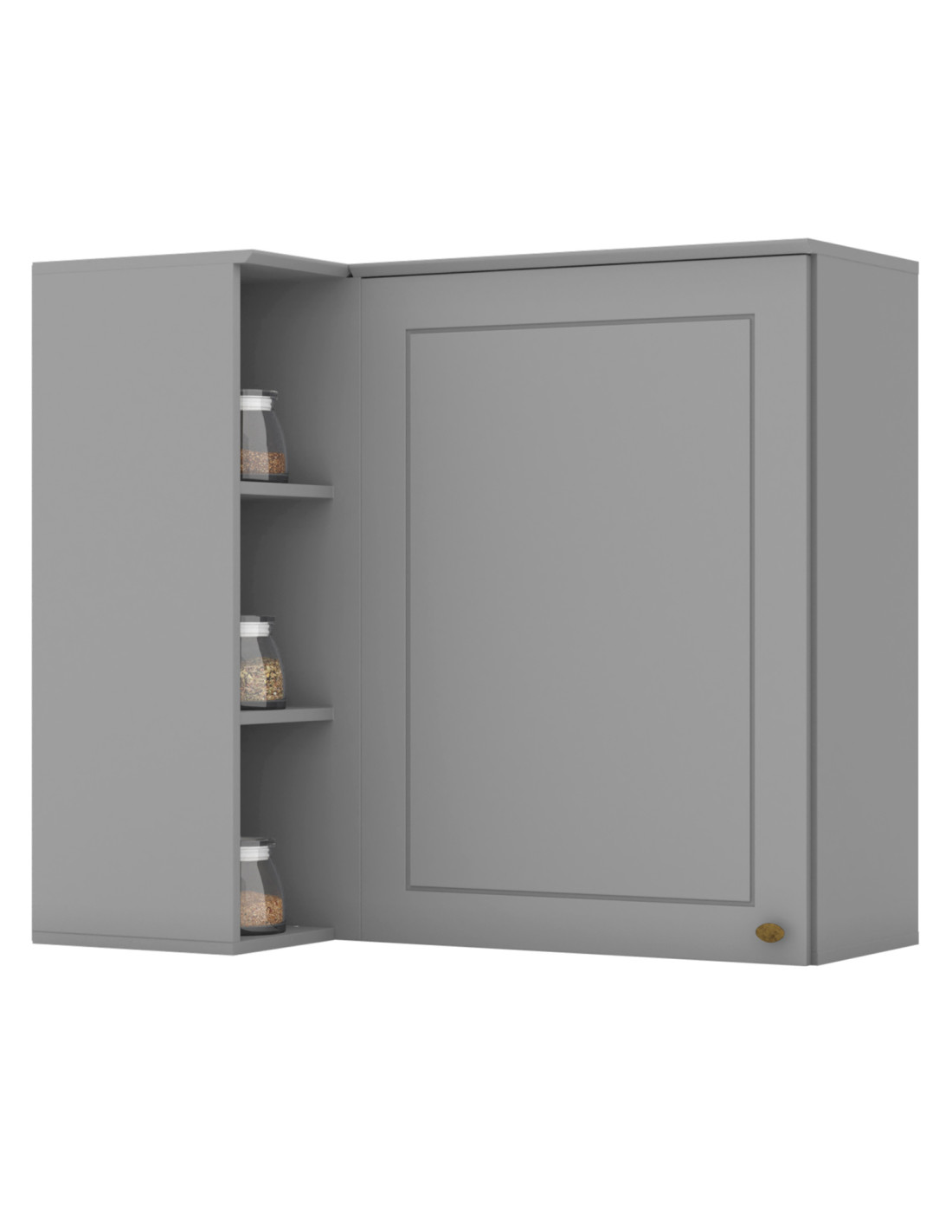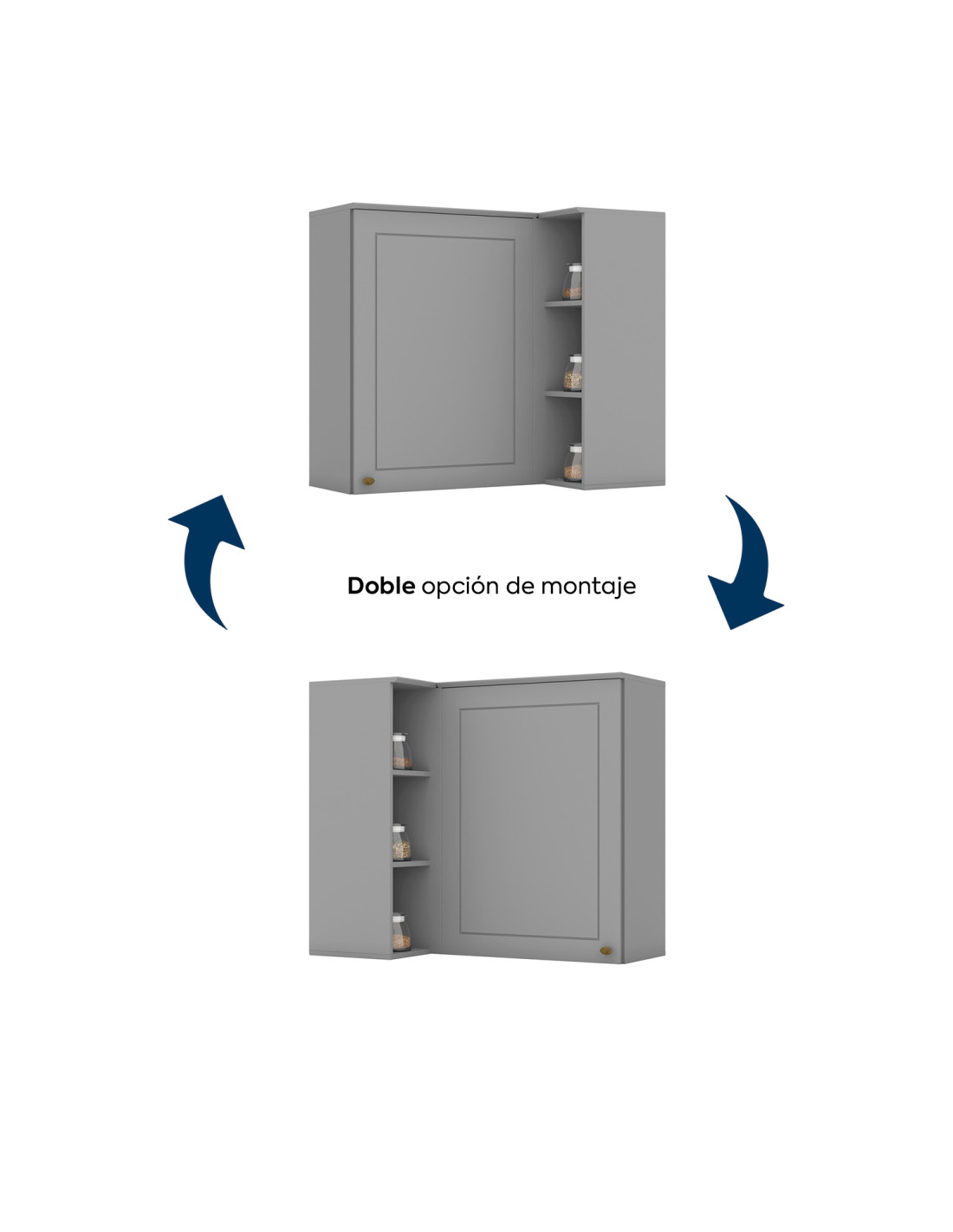 El aéreo esquinero Americana gris 94 cm optimiza espacios con un diseño moderno y equilibrado. Su estructura robusta y acabado mate aportan estilo y durabilidad. Ideal para aprovechar las esquinas de la cocina, su forma ergonómica y color neutro permiten integrar armoniosamente distintas composiciones. Este mueble ofrece una solución funcional y elegante, transformando zonas poco utilizadas en espacios útiles con una estética sofisticada.
