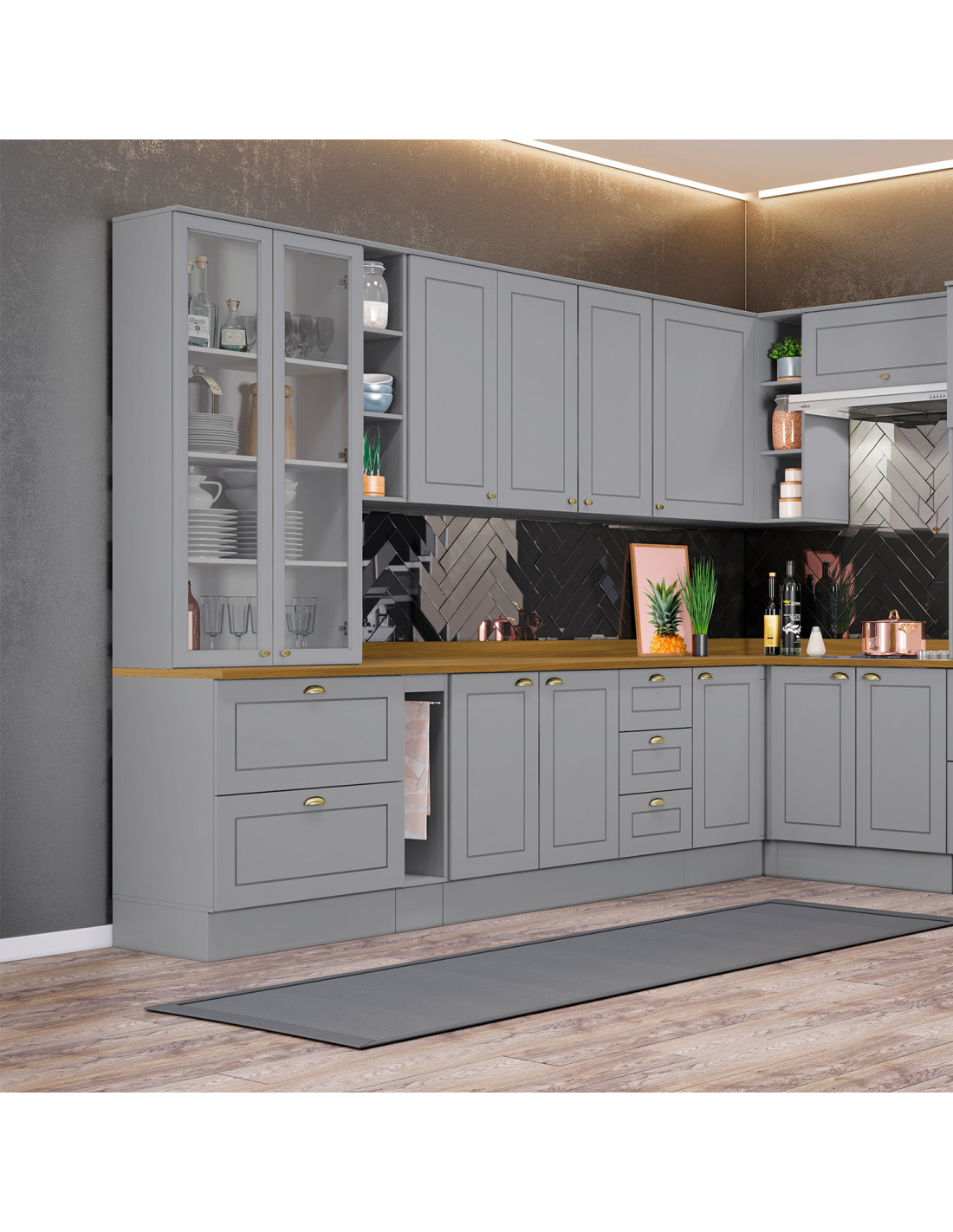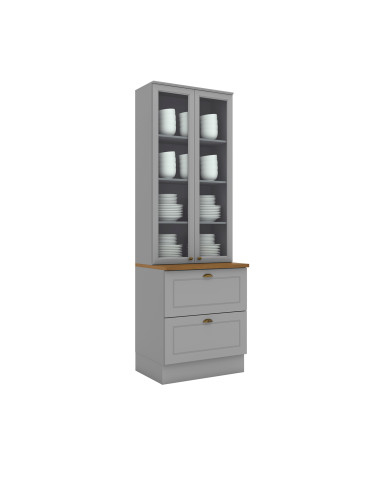 La vitrina Americana gris 71.5 cm combina un diseño moderno y sobrio con materiales resistentes y un acabado elegante. Su tono gris aporta equilibrio y sofisticación, ideal para ambientes contemporáneos. Con compartimentos amplios y estructura firme, permite exhibir y organizar con estilo. Su diseño funcional y estética neutra se adaptan a distintos espacios, creando una atmósfera serena y moderna que realza la decoración.