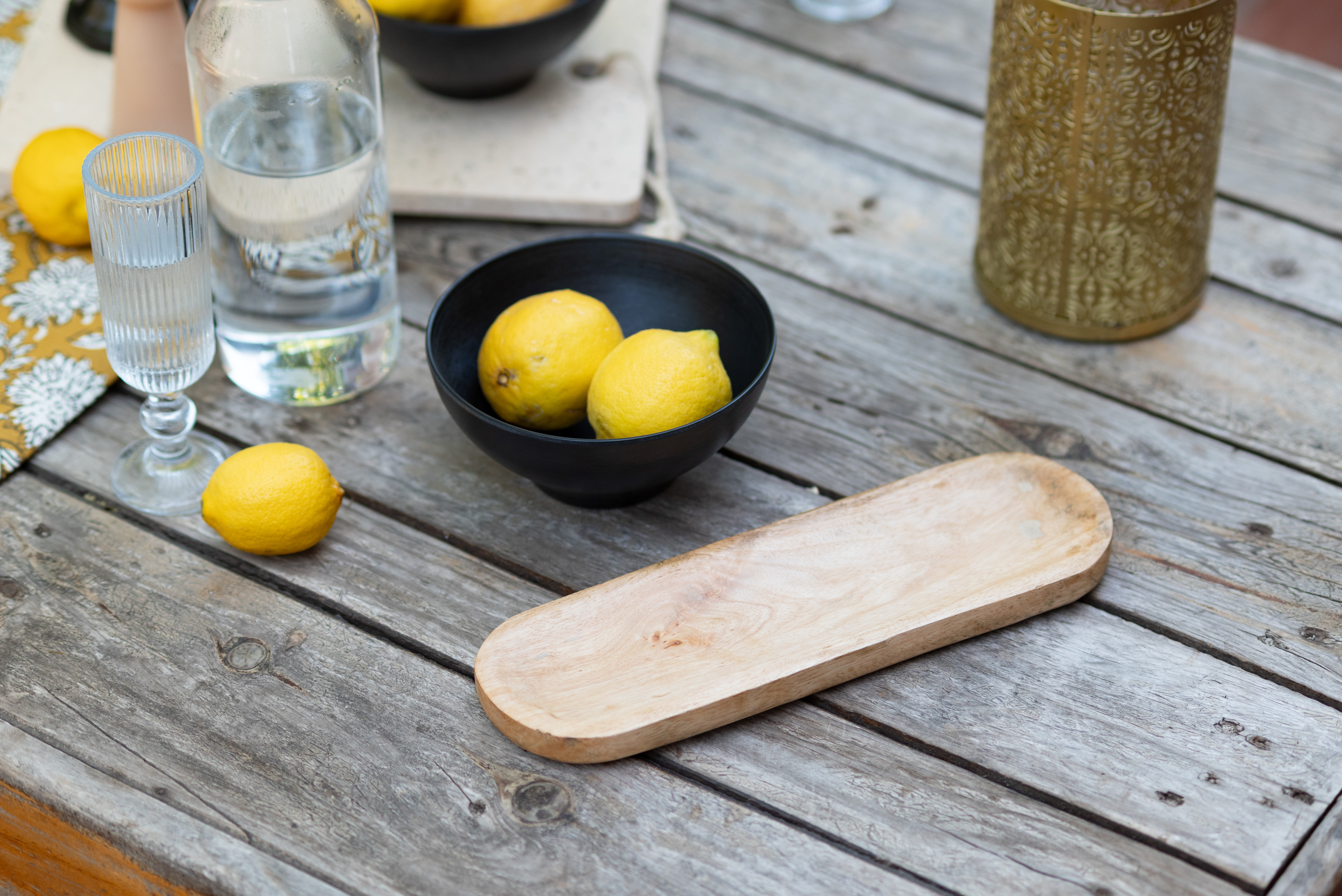 Productos que decoran y cumplen una función Los pequeños detalles marcan la diferencia. Tablas de madera, bandejas y bowls funcionan tanto para servir como para decorar, aportando textura y carácter a la mesa.