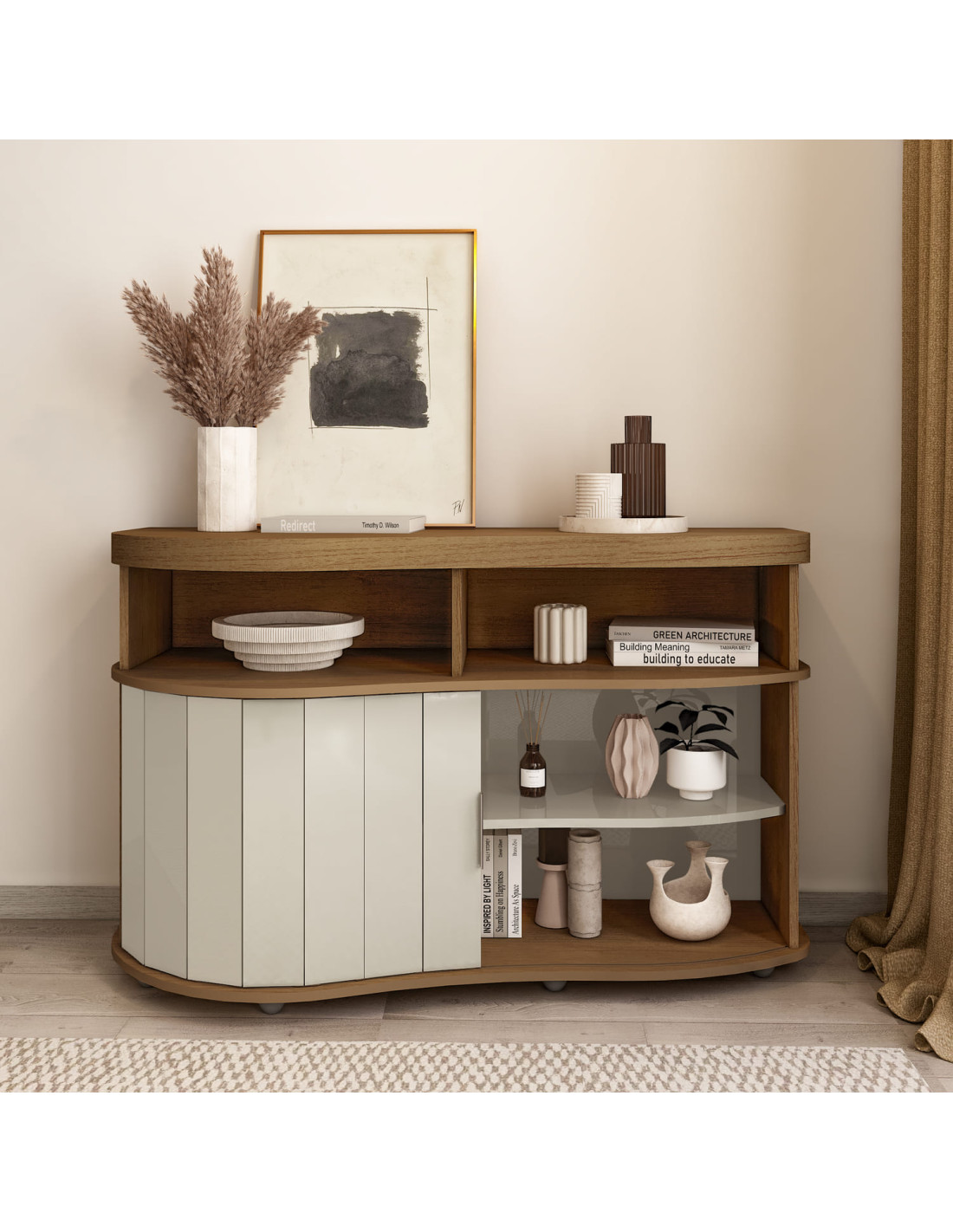 Buffet 1 puerta Magnum, mueble moderno y funcional con acabado natural que aporta elegancia y equilibrio a tus espacios.