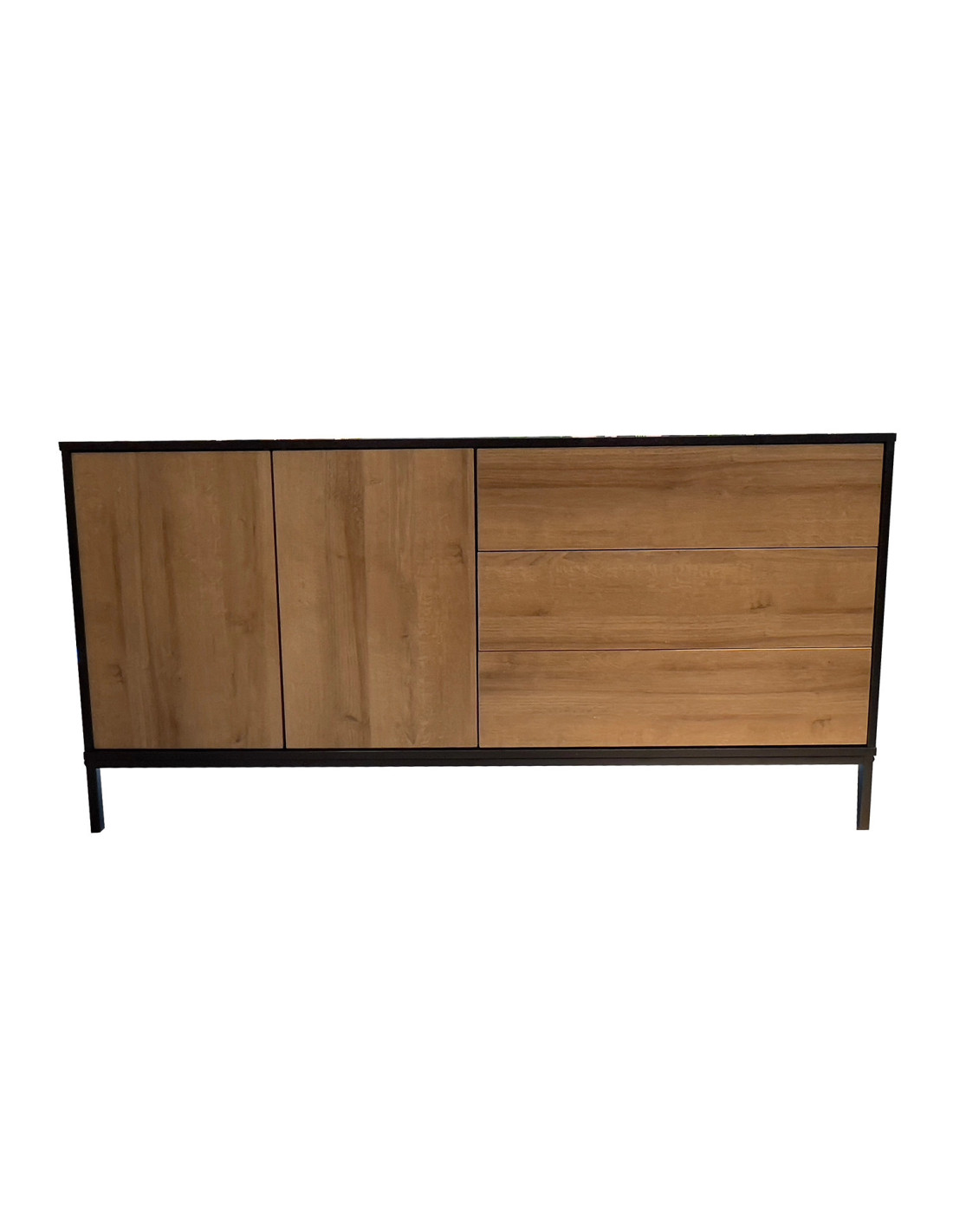 Buffet con 2 puertas y 3 cajones, fabricado en MDP. Diseño industrial ideal para organizar comedor o living.