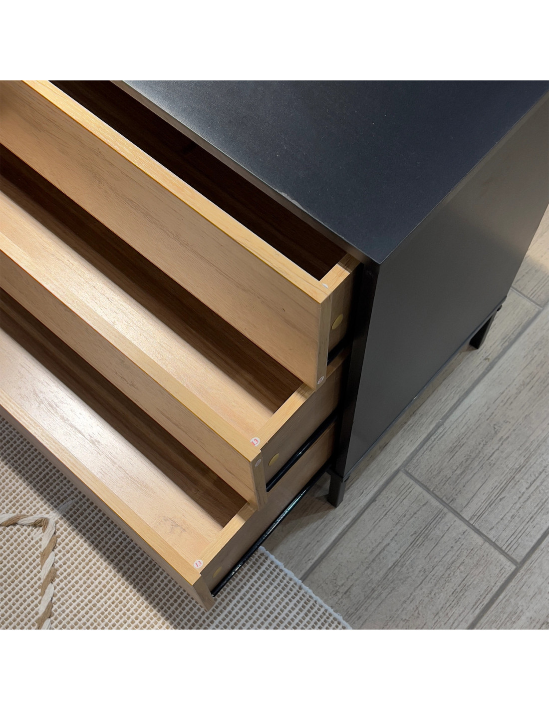 El buffet Lambak es una pieza clave para quienes buscan organización y estilo industrial moderno en un solo mueble. Su combinación de 2 puertas y 3 cajones permite guardar desde vajilla hasta documentos o textiles, convirtiéndose en una solución ideal para mantener el orden en comedor o living.