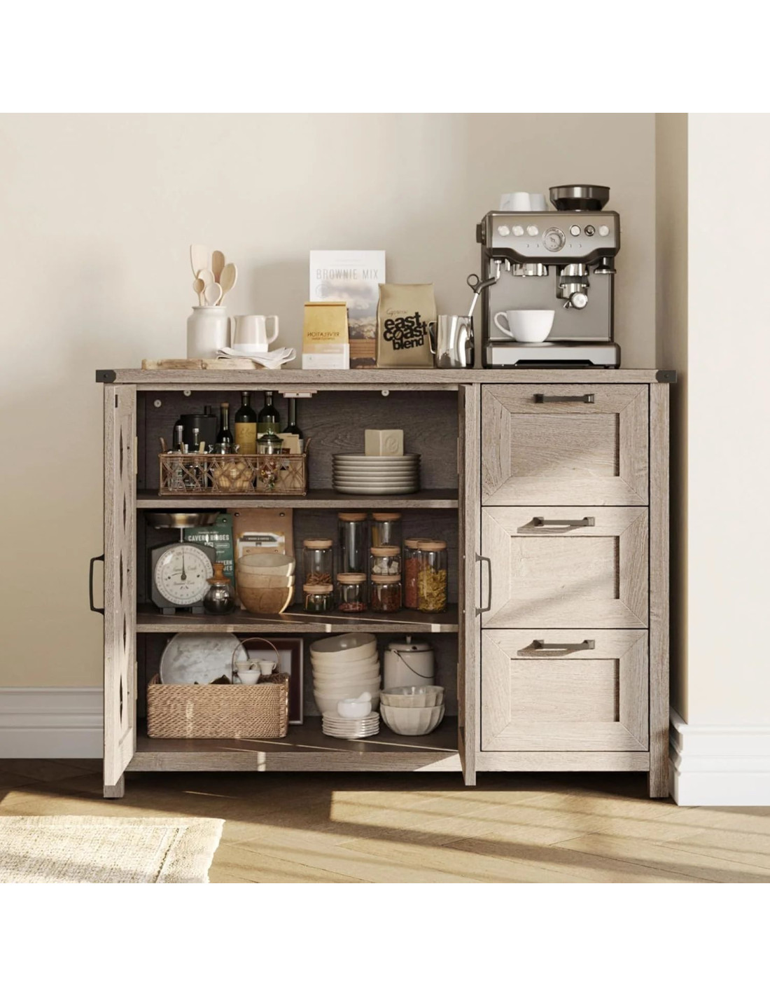 Con su tono gris suave y diseño contemporáneo, el Buffet Vinh une sobriedad y calidez. Perfecto para hogares con estilo moderno.
