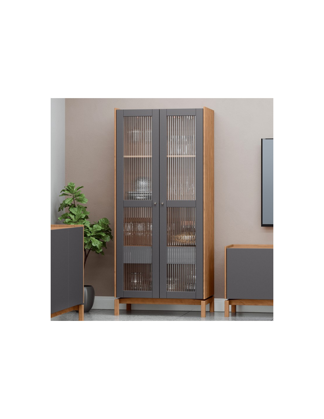 Moderna y funcional, la vitrina Barcelona aporta orden con un diseño elegante y sobrio.