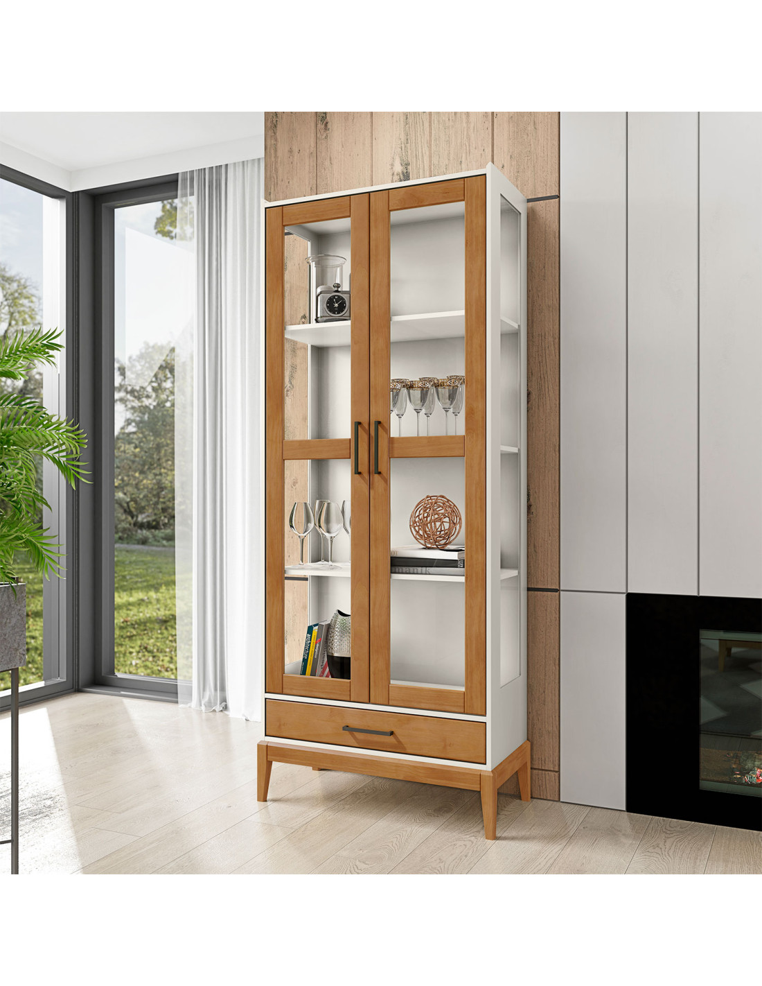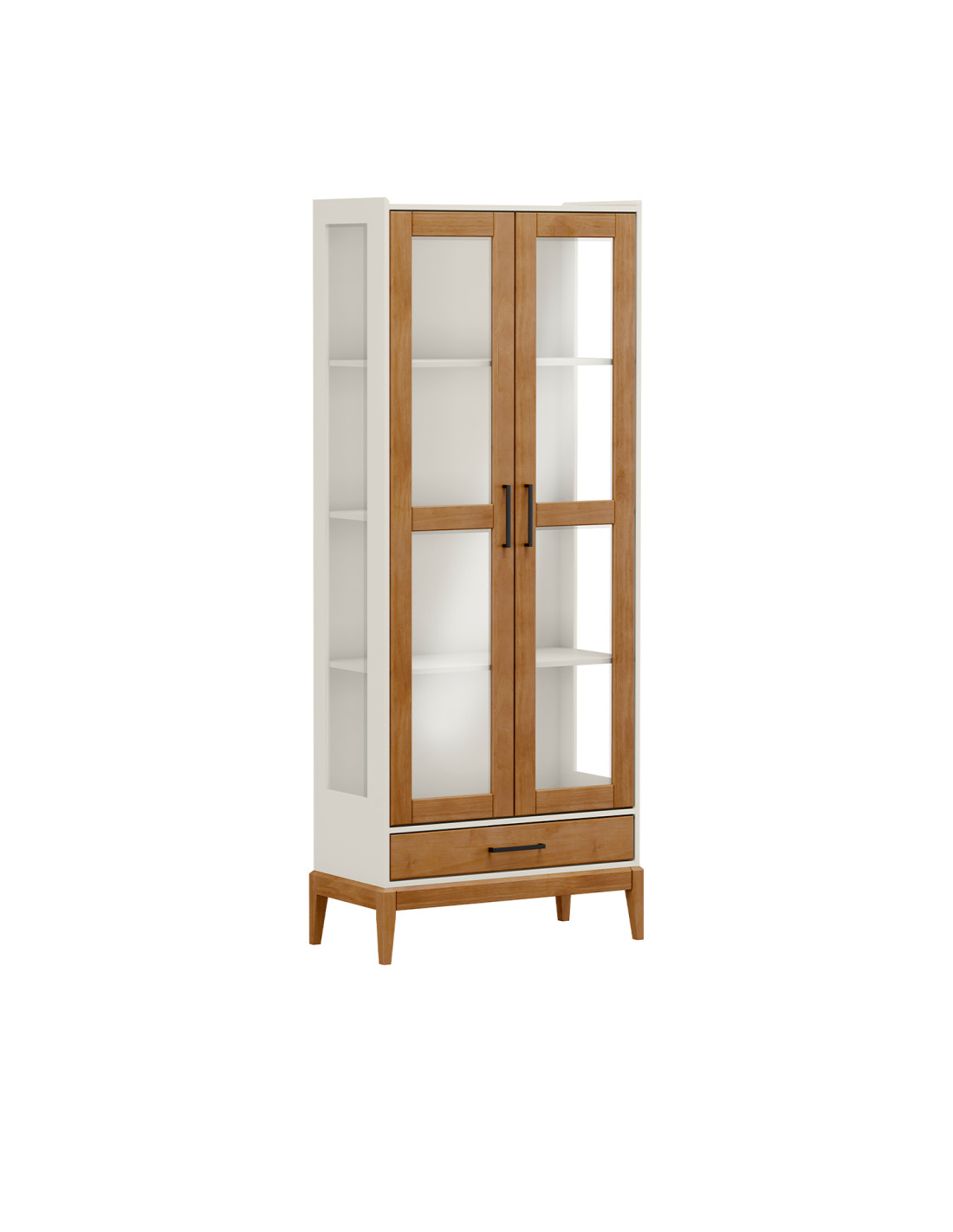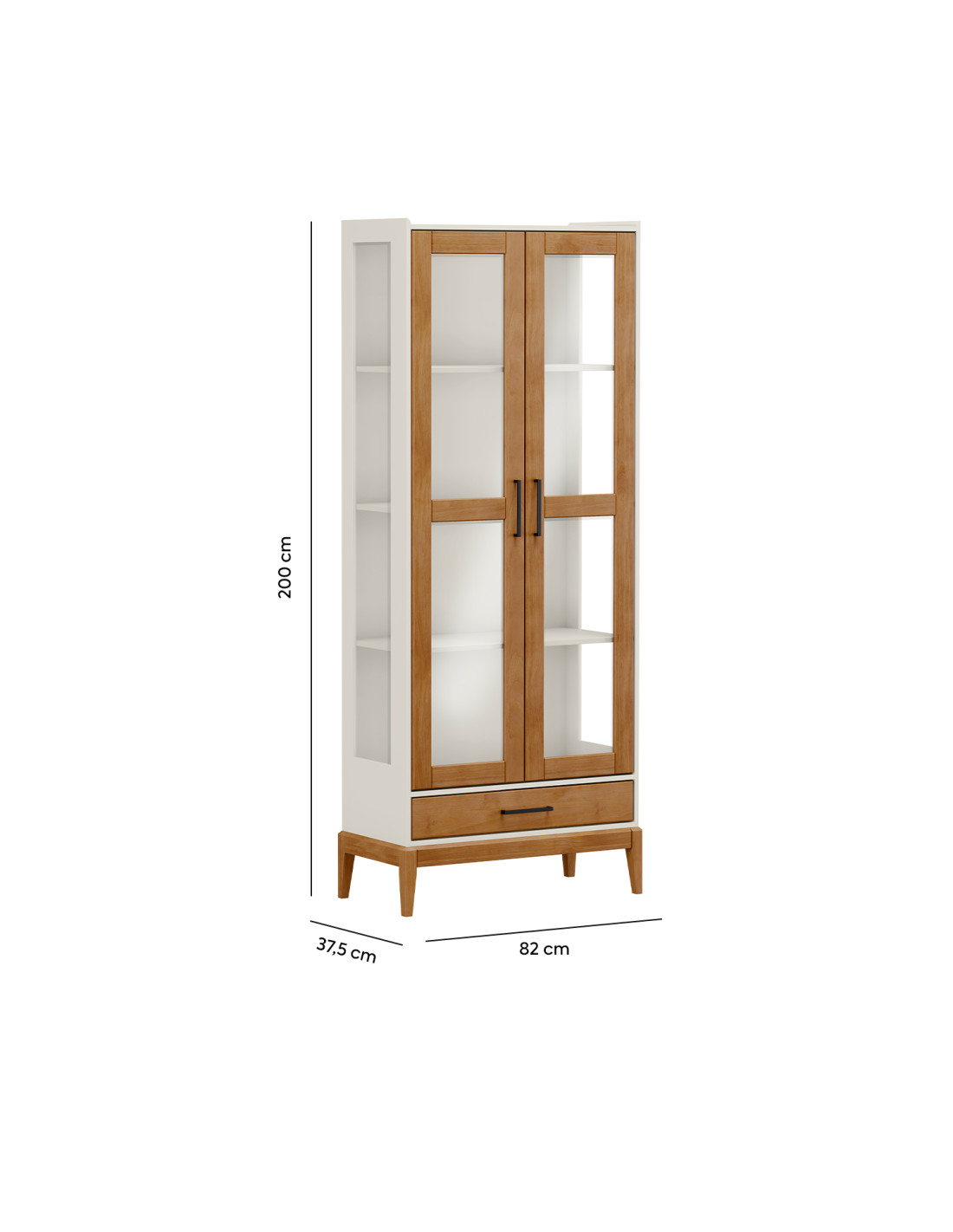 La vitrina Milao de 82 cm es la pieza perfecta para realzar tu espacio con un toque de calidez y sofisticación. Fabricada en madera de pino, su diseño incluye repisas amplias y un cajón, ofreciendo una solución elegante para exhibir y organizar tus objetos más preciados. Su estética natural y funcionalidad convierten a esta vitrina en un complemento versátil, ideal para cualquier ambiente, creando un entorno acogedor y lleno de estilo que invita a disfrutar cada rincón del hogar.