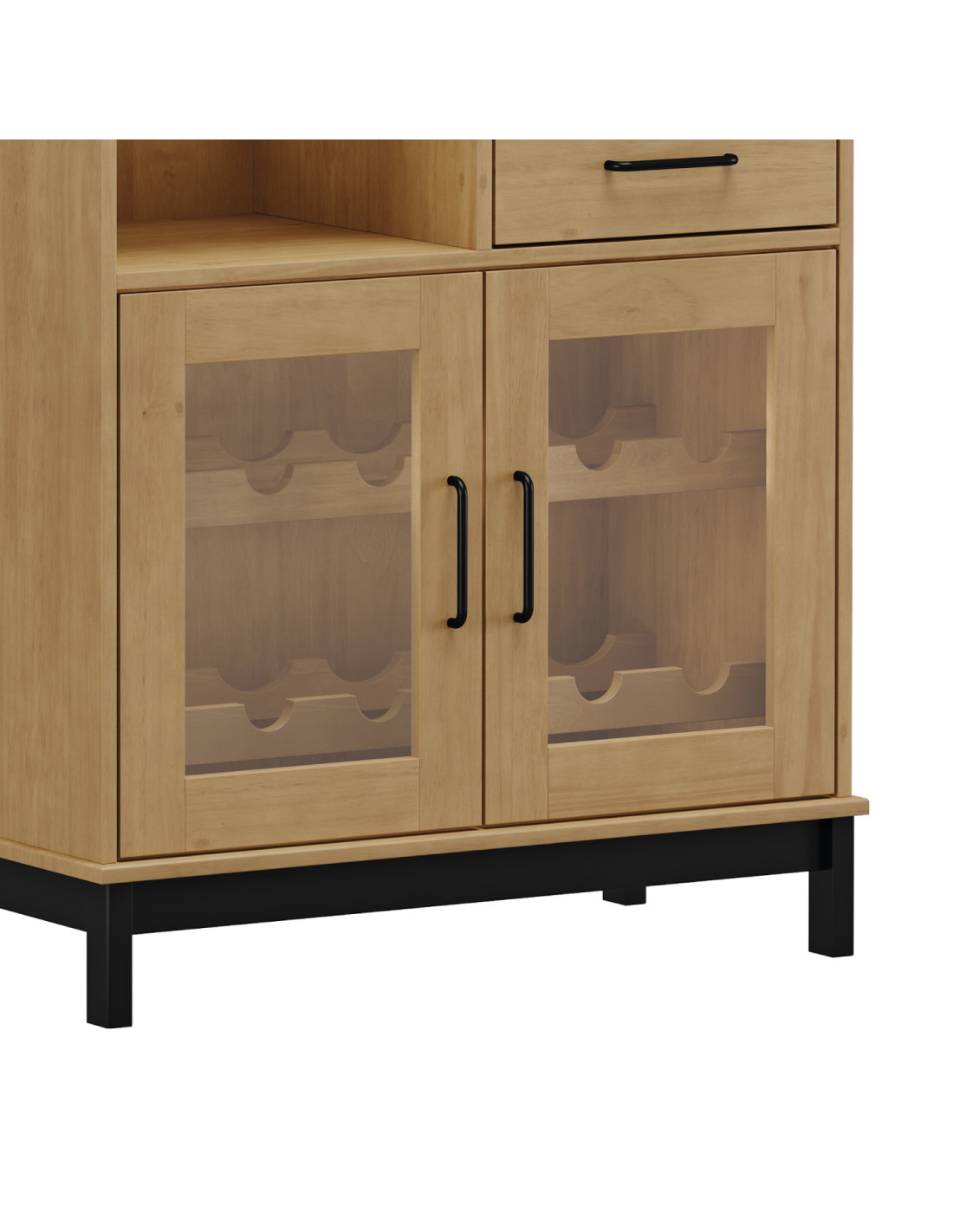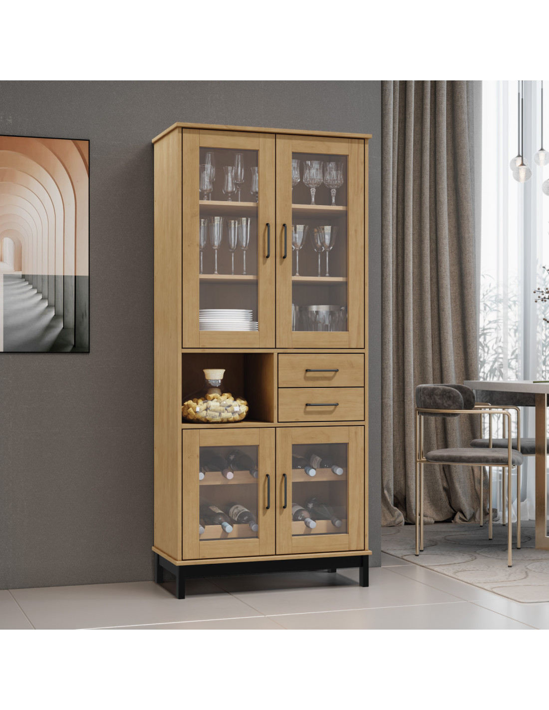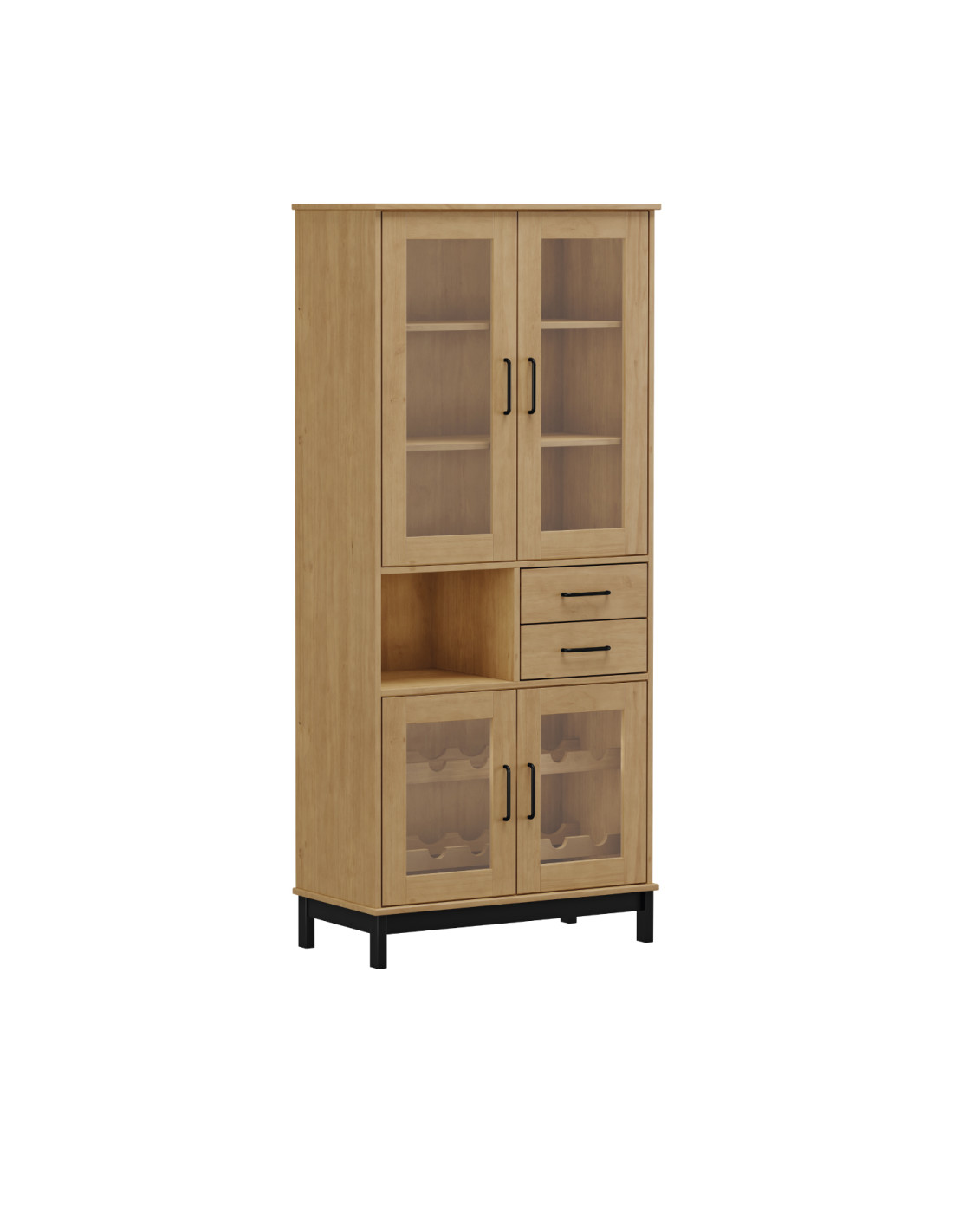La vitrina Madri bar de 80 cm combina funcionalidad y elegancia para transformar cualquier espacio en un rincón sofisticado. Fabricada en madera de pino, su diseño incluye un compartimento especial para botellas de vino, ideal para los amantes de la enología. Su estructura robusta y estética refinada se integran a la perfección en tu sala o comedor, ofreciendo un equilibrio entre estilo y practicidad que invita a disfrutar momentos especiales con familia y amigos.
