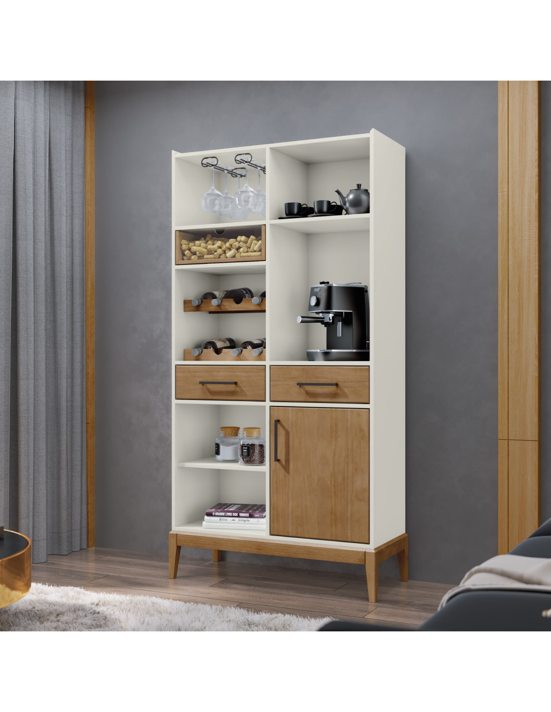 Funcional y moderna, la vitrina Milao bar ofrece diseño elegante con amplio almacenamiento.