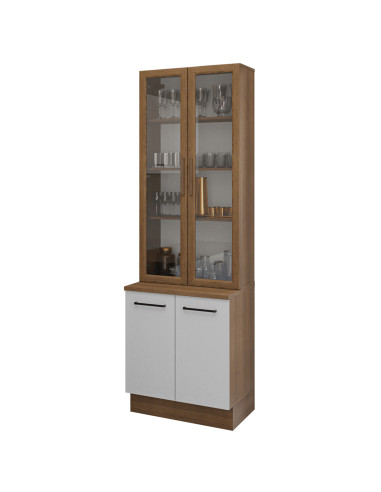 El mueble de horno Agata Blanco 70 cm combina funcionalidad, diseño y eficiencia en un solo mueble. Con dos puertas batientes y una basculante, todas con bisagras metálicas de amortiguación y tiradores de aluminio, ofrece un acceso suave y práctico a su interior. Su espacio, ideal para utensilios, vajilla y electrodomésticos, incluye dos compartimentos para horno o microondas (47 cm x 67 cm) y una salida para el calor. El acabado en madera rústica y puertas blancas, junto con la pintura Poliéster ecológica de 7 capas, asegura durabilidad. Las patas regulables en PVC y el zócalo desmontable facilitan su instalación y mantenimiento. Perfectamente modular, puedes combinarla con otros módulos Agata para personalizar tu cocina.