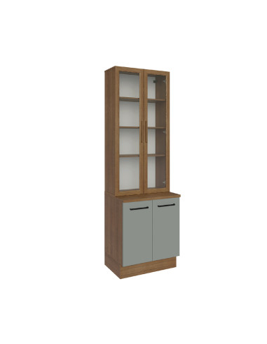 La vitrina Agata gris de 70 cm es el toque perfecto para añadir elegancia y modernidad a tu comedor o cocina. Su diseño sofisticado incluye tiradores de aluminio, puertas de vidrio con cierre soft-close para una apertura suave y patas regulables de PVC, asegurando comodidad y estilo. El amplio espacio interno permite organizar vajilla, vasos y otros elementos con facilidad, manteniendo tu espacio ordenado y accesible. Su acabado en tonos de madera rústica y gris aporta una atmósfera cálida y refinada. Además, se puede combinar con otros módulos de la línea Agata para crear una cocina o comedor armonioso y funcional.