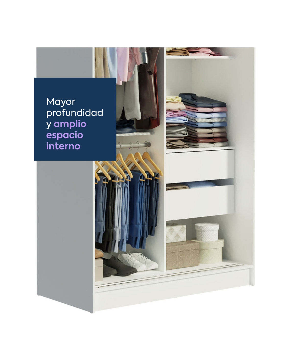 Moderno y minimalista, el closet Tokio blanco aporta luz y orden al dormitorio. Ideal para ambientes contemporáneos.