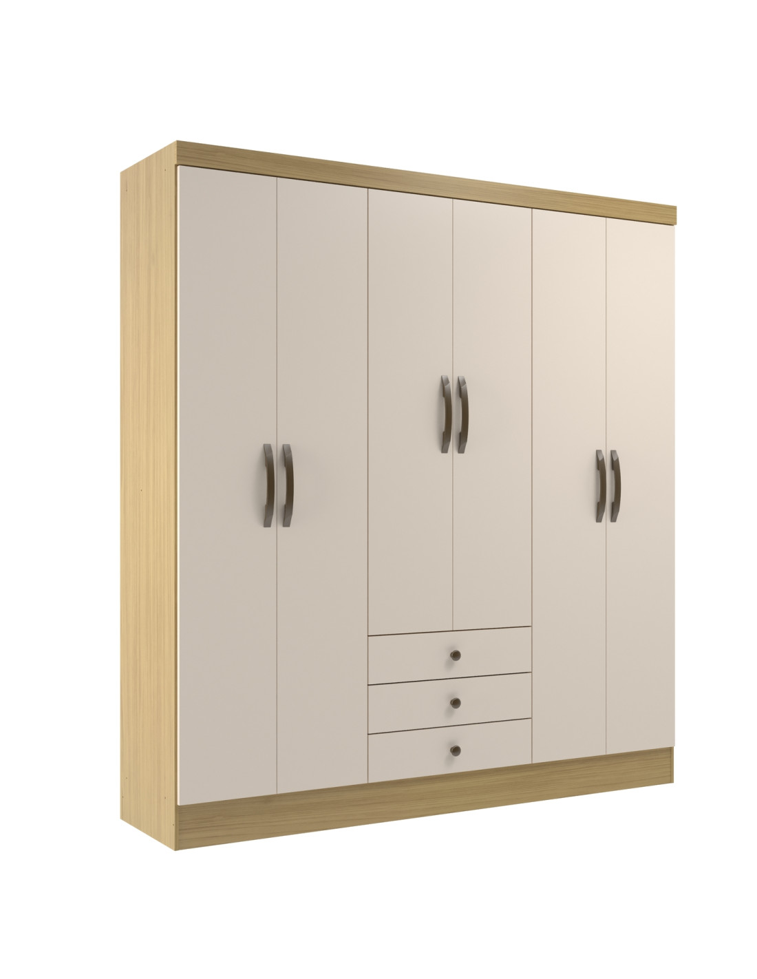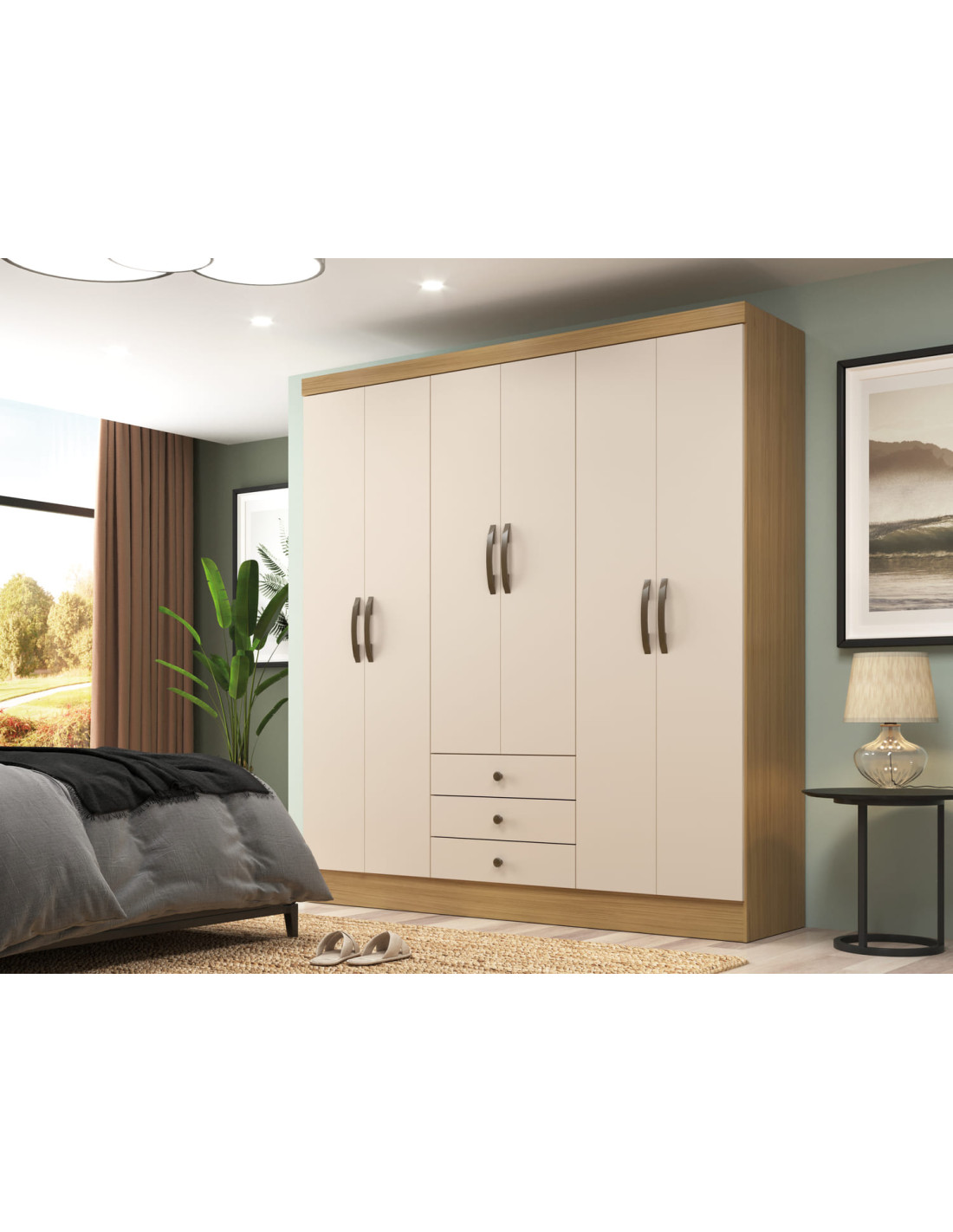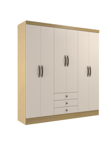 El closet Madrid 6 puertas Canary/Off White combina diseño contemporáneo y luminosidad natural. Su contraste entre el tono madera y el blanco suave genera armonía y amplitud. Ideal para quienes buscan elegancia funcional, ofrece gran capacidad de almacenamiento y materiales de calidad. Cada detalle refleja el estilo distintivo de DKO Home: espacios cálidos, equilibrio visual y confort moderno.