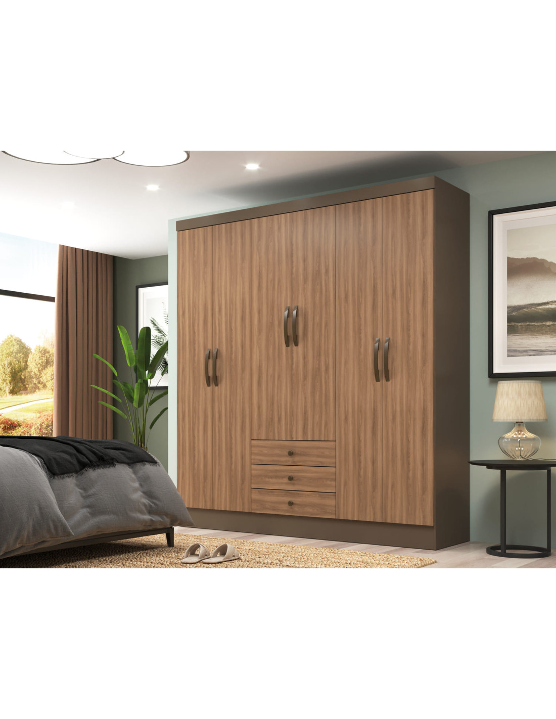 El closet Madrid 6 puertas en tonos damasco y nogal representa la máxima expresión de elegancia contemporánea. Su acabado cálido y contrastante crea una atmósfera envolvente y sofisticada. Con amplio espacio interno, ofrece funcionalidad sin perder su encanto decorativo. Fabricado con materiales de calidad, garantiza durabilidad y belleza atemporal. Ideal para quienes buscan un diseño imponente, equilibrado y naturalmente acogedor.