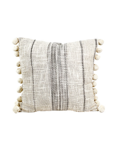 Cojín 45x45cm pompones bordes beige