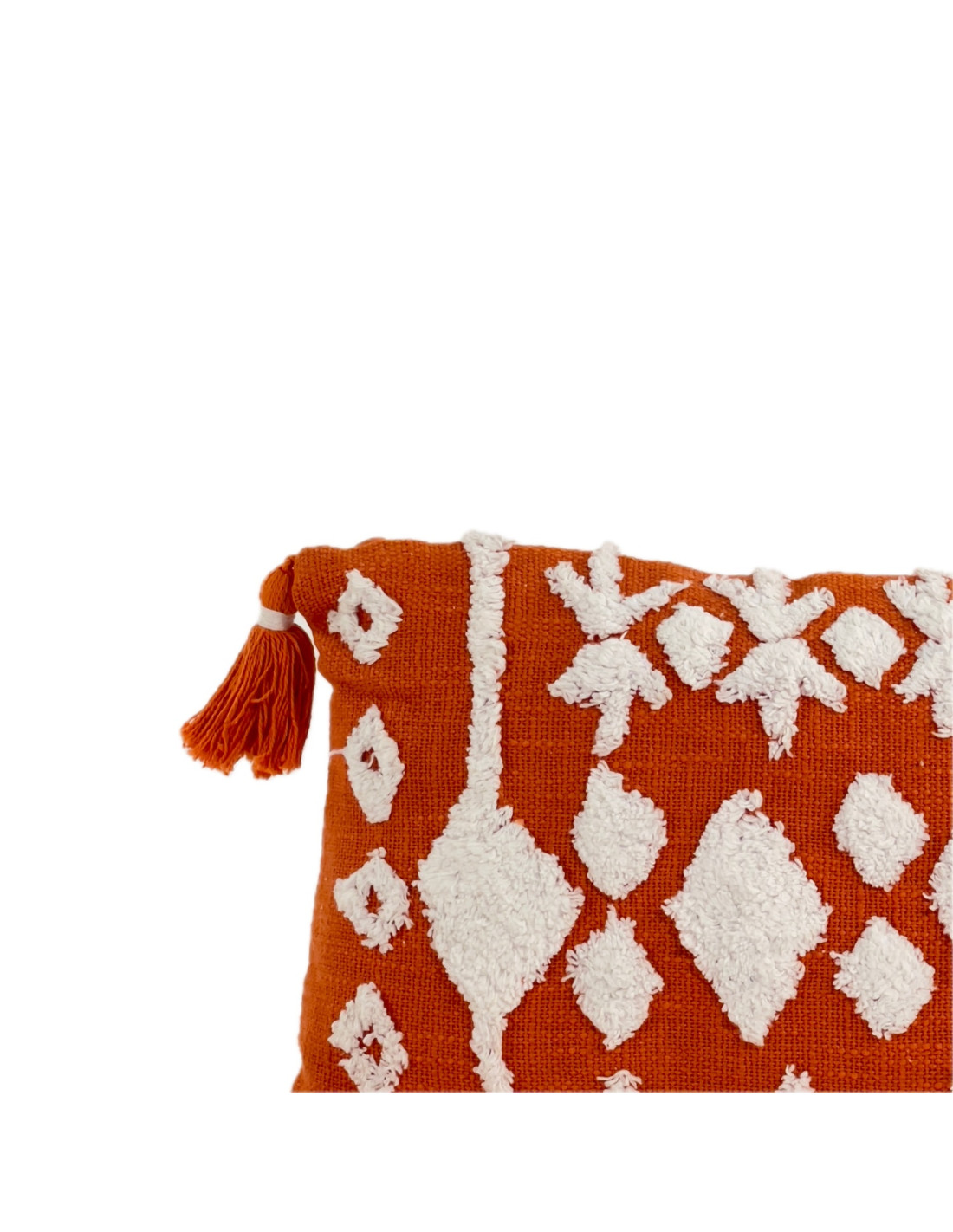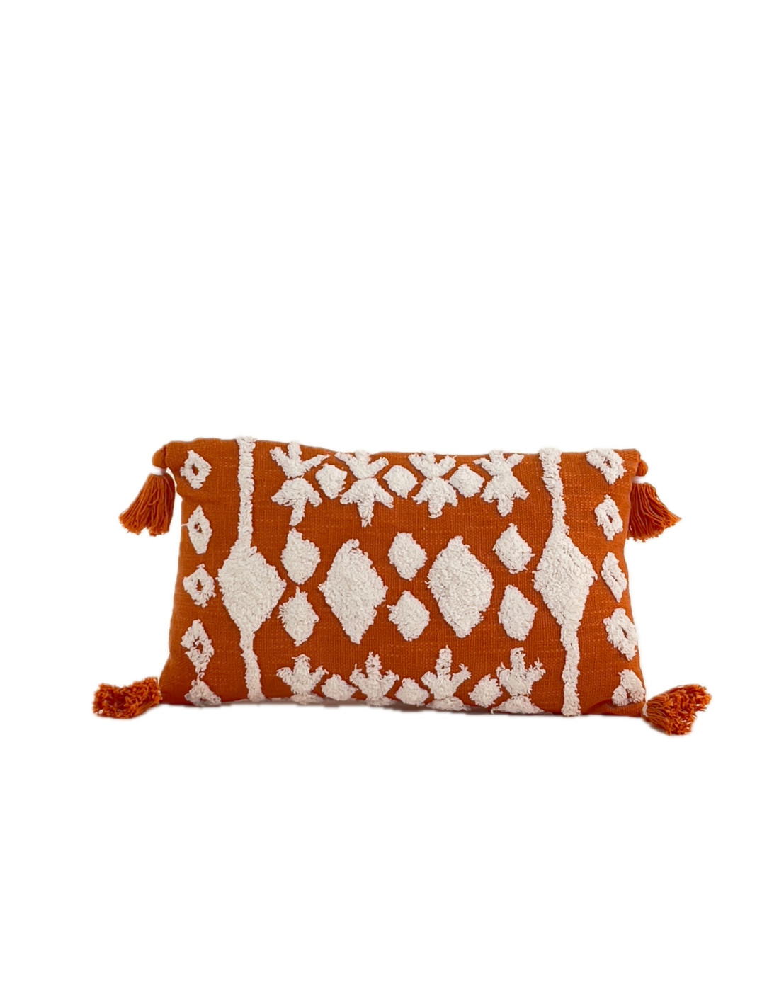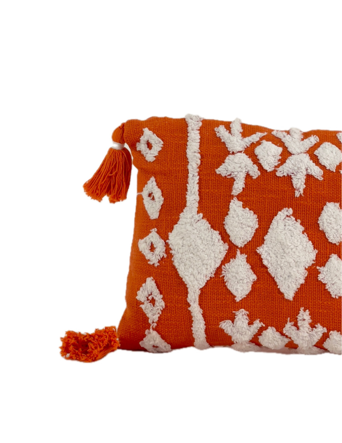 Cojín 30x50cm naranjo/blanco con borlas