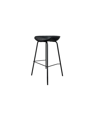 Silla alta tapizada en negro con diseño moderno, cómoda y elegante para barras contemporáneas.
