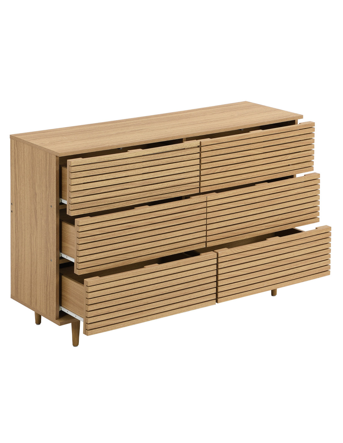 La Cómoda Edano 6 cajones redefine la elegancia en tu dormitorio, ofreciendo una fusión perfecta de sofisticación y funcionalidad. Este mueble de madera, con su diseño contemporáneo, destaca por sus 6 cajones amplios que proporcionan un almacenamiento generoso y ordenado. Ideal para cualquier espacio, la cómoda grande Edano se integra con fluidez en su ambiente, aportando un toque de refinamiento y un sentido de organización impecable. Sin duda no es una cómoda para dormitorio cualquiera, sino una pieza central que elevará el estilo y la comodidad de tu hogar.
