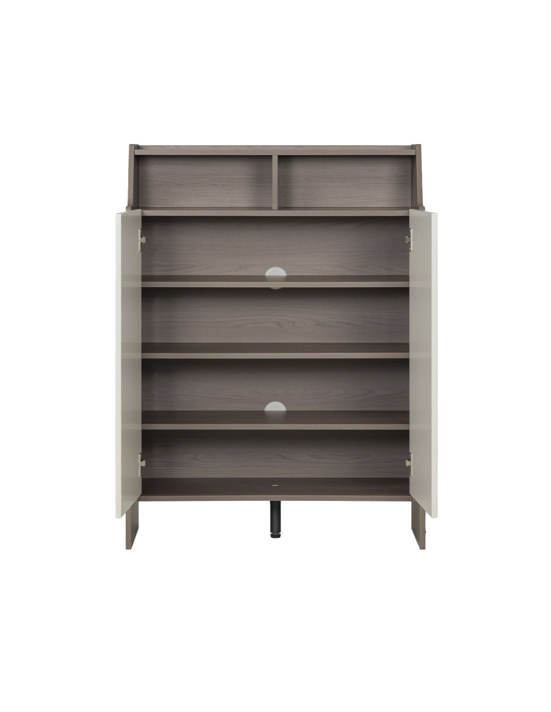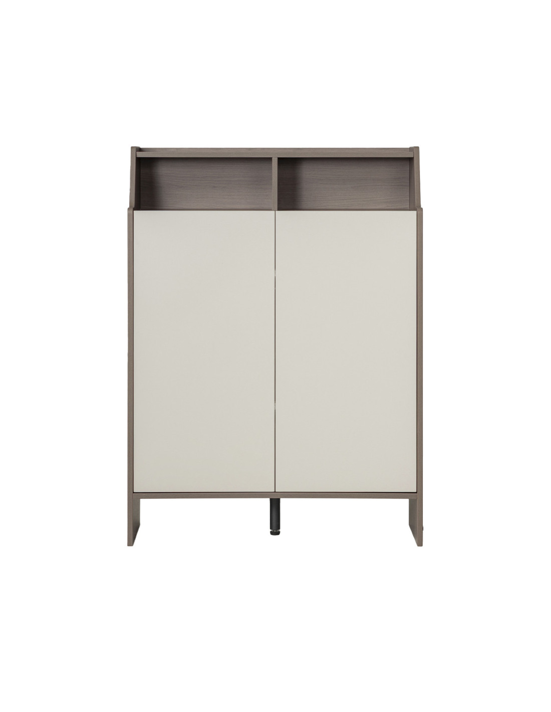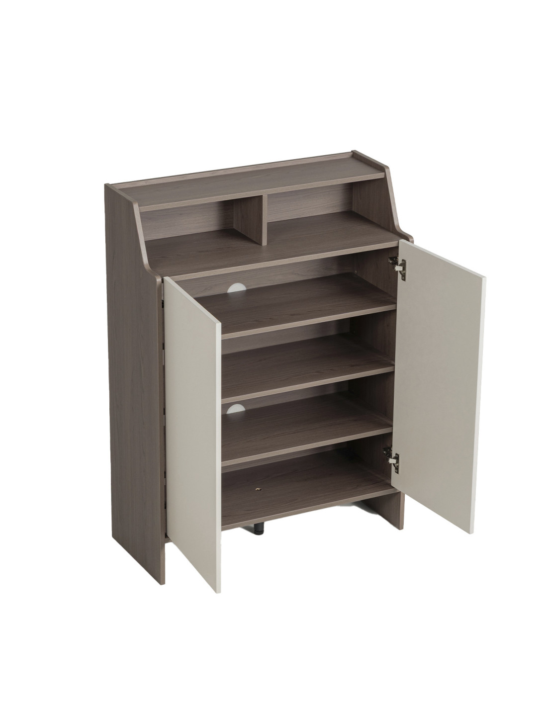 Zapatero de 2 puertas con estructura de madera contrachapada, repisas móviles y bisagras metálicas, ideal para organizar tus espacios con funcionalidad y estilo.