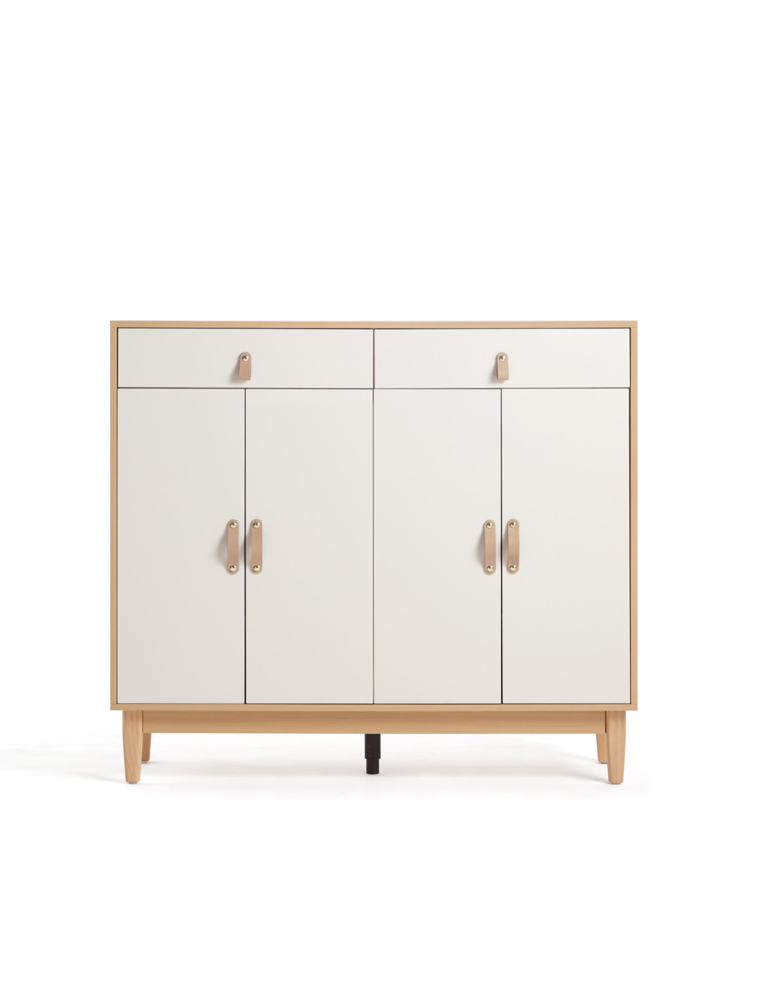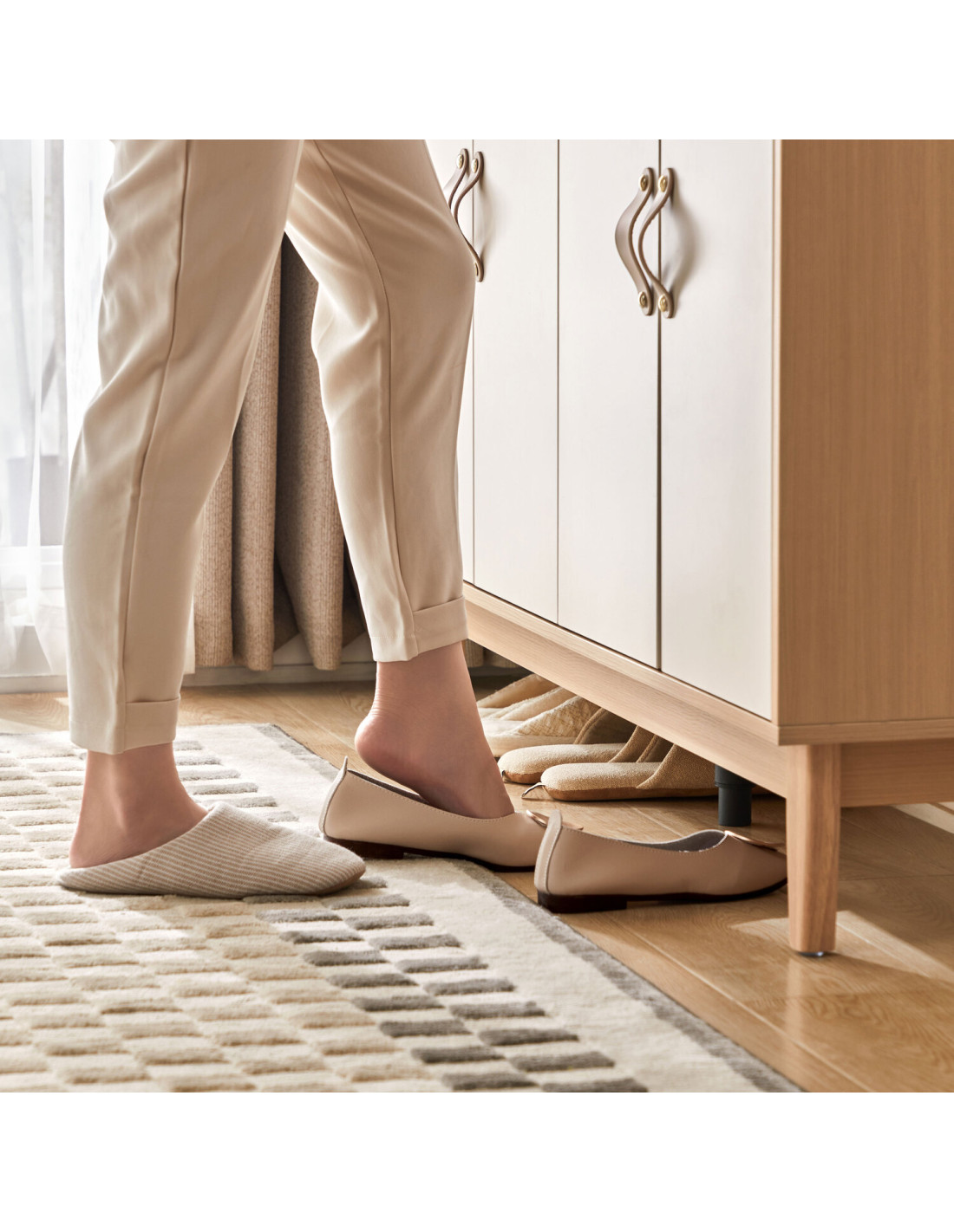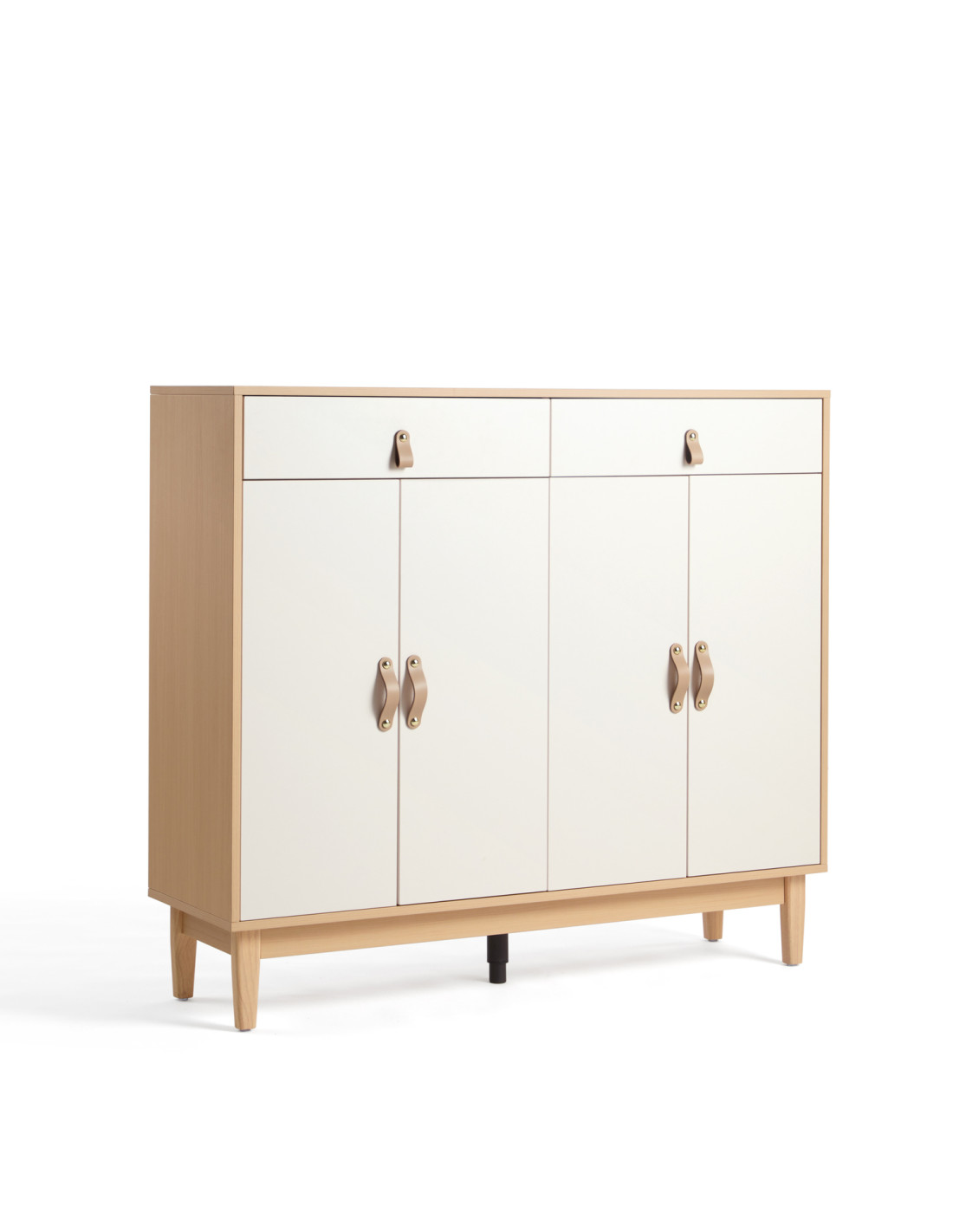 El zapatero Sabira combina líneas suaves y tonos naturales. Su estilo práctico aporta armonía y calidez al recibidor.