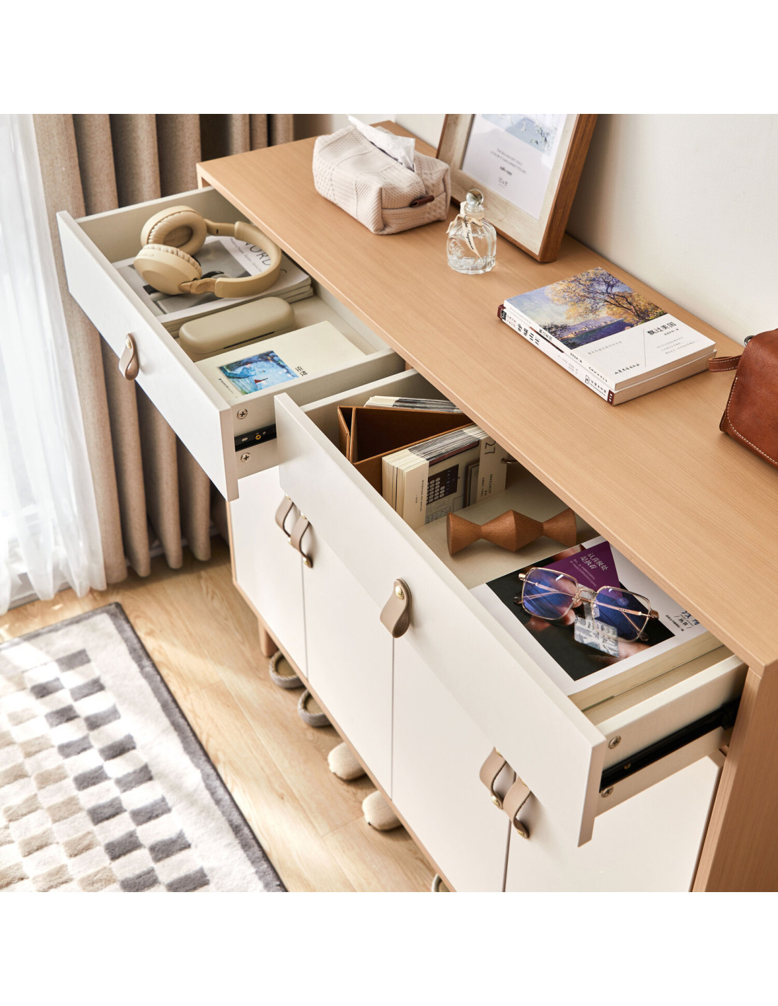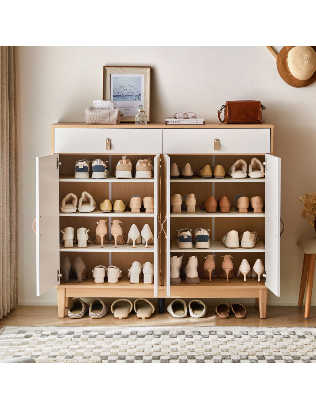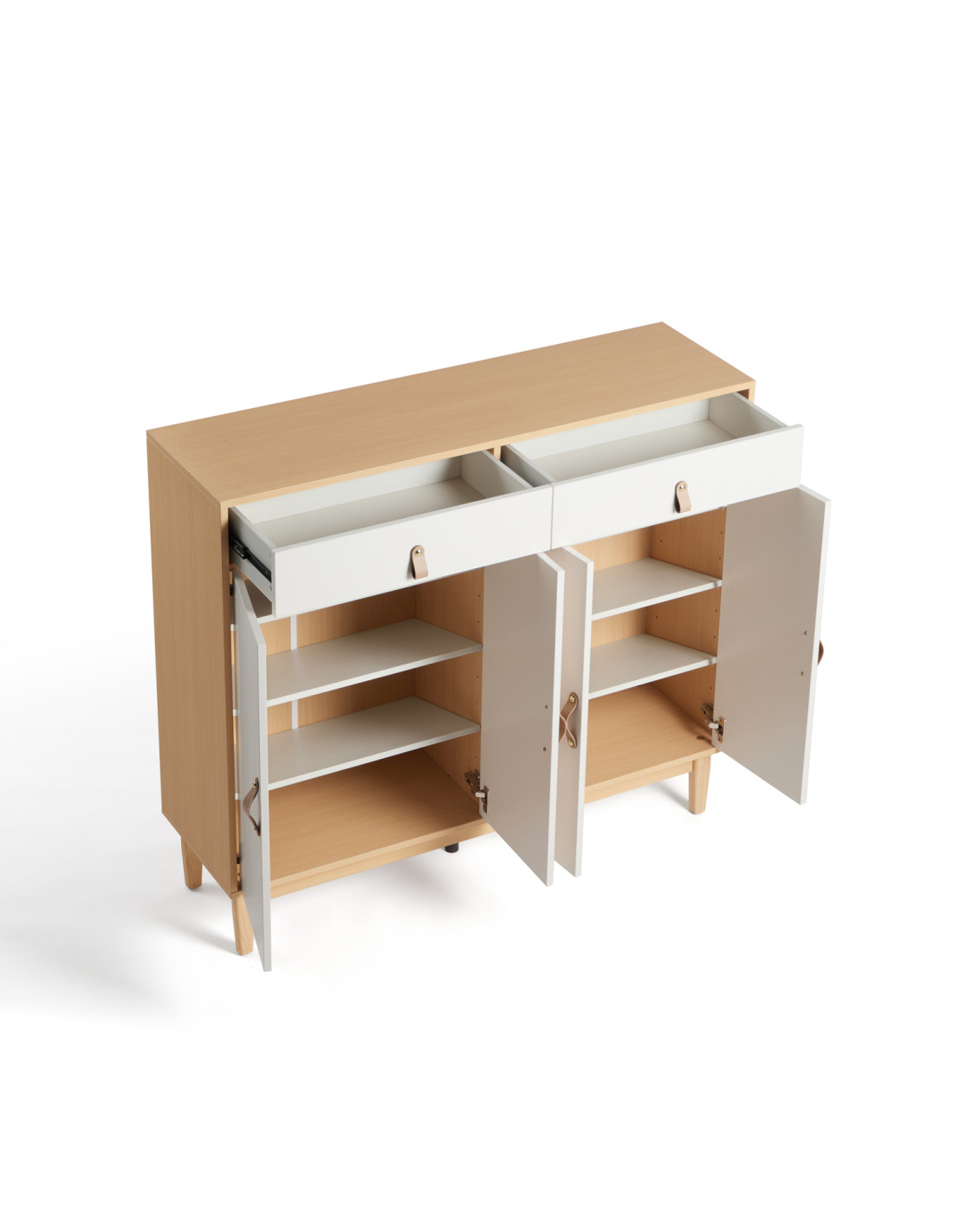 El zapatero Sabira combina líneas suaves y tonos naturales. Su estilo práctico aporta armonía y calidez al recibidor.