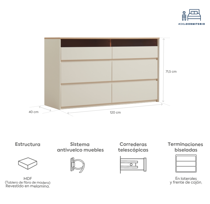 Cómoda Estonia 6 cajones