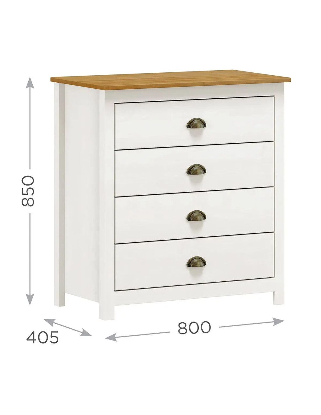 La cómoda Topazio de madera con 4 cajones es la pieza ideal para quienes buscan equilibrio entre estilo y funcionalidad. Su diseño elegante realza cualquier ambiente, ofreciendo un espacio generoso para mantener tus pertenencias organizadas con clase. La cálida textura de la madera se combina con la practicidad de sus amplios cajones, brindando una solución de almacenamiento que aporta tanto belleza como orden a tu hogar. Esta cómoda 4 cajones no solo optimiza el espacio, sino que también añade un toque de sofisticación a tu decoración.