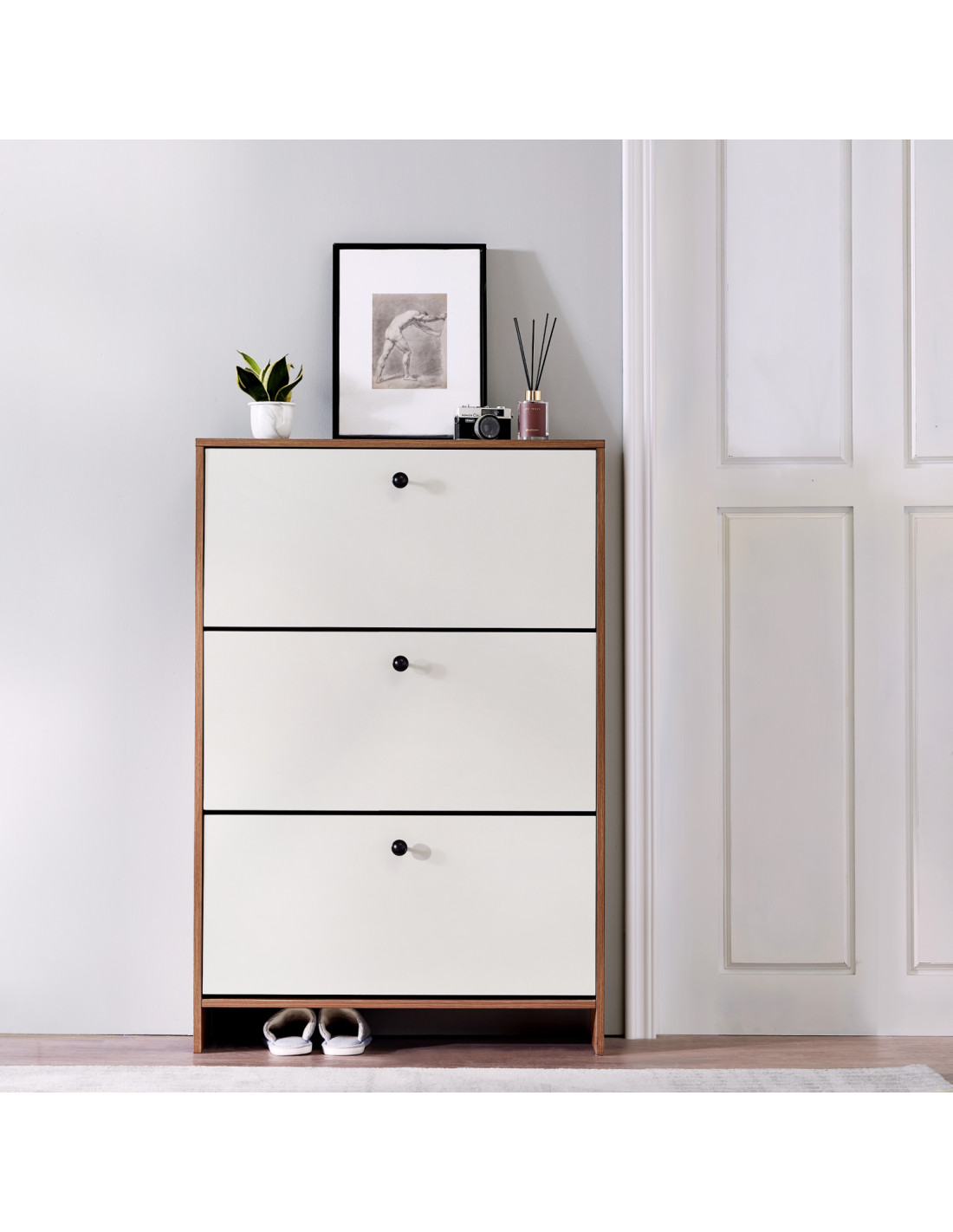 El Zapatero Madison de 3 cajones en elegante combinación café y blanco transforma cualquier espacio en un refugio de orden y estilo. Este zapatero mueble combina diseño moderno con funcionalidad, ofreciendo tres niveles que optimizan el almacenamiento de tus zapatos con un toque de sofisticación. Perfecto como zapatero organizador, su estética versátil se integra fácilmente en la decoración de tu hogar, creando un ambiente armónico donde cada detalle cuenta para reflejar tu personalidad y buen gusto.