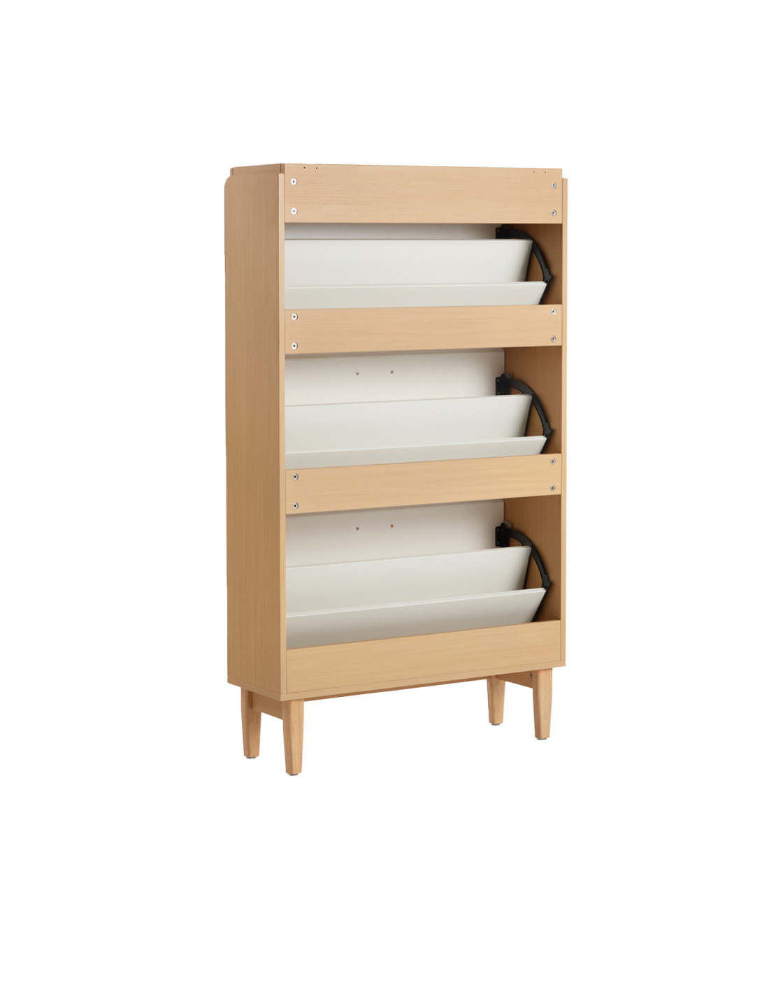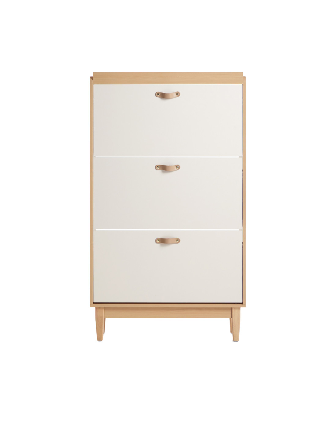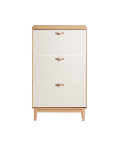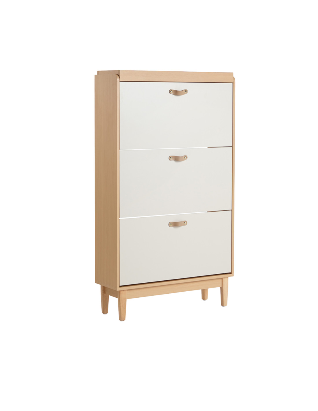 Descubre el Zapatero Mila 3 cajones, un mueble que redefine la organización con estilo en tu hogar. Fabricado con tablero de melamina y pies de madera de caucho, combina durabilidad con un diseño elegante. Cada detalle, desde los paneles laterales hasta las puertas abatibles y los estantes internos, está pensado para ofrecer funcionalidad y estética. Los herrajes de doble capa y los soportes de estante garantizan estabilidad y facilidad de uso, mientras que los mangos de imitación de cuero color marfil y aleación de zinc añaden un toque sofisticado. Con el Zapatero Mila 3 cajones, organizar tus zapatos se convierte en un placer estético y práctico, mejorando la elegancia y el orden en cualquier espacio.