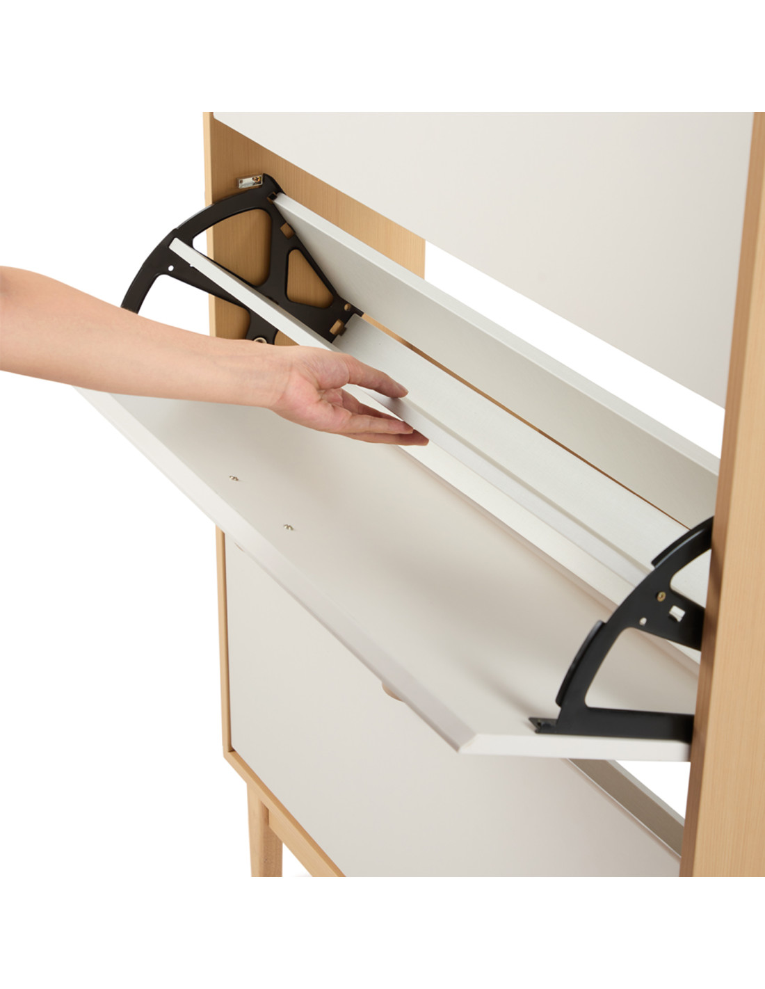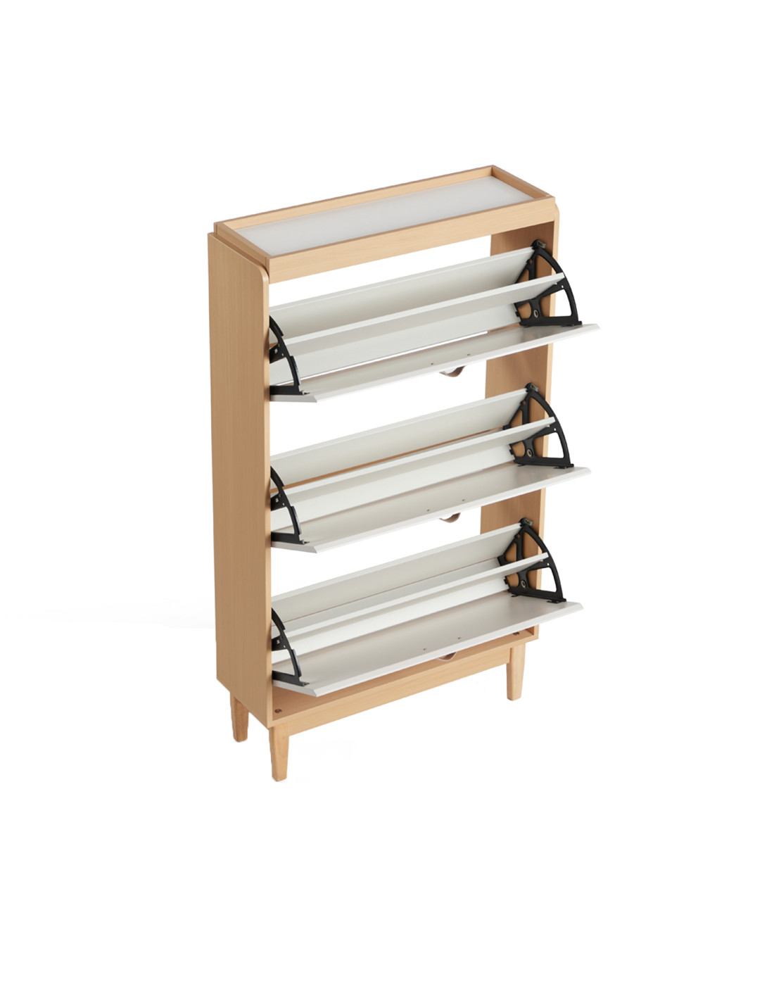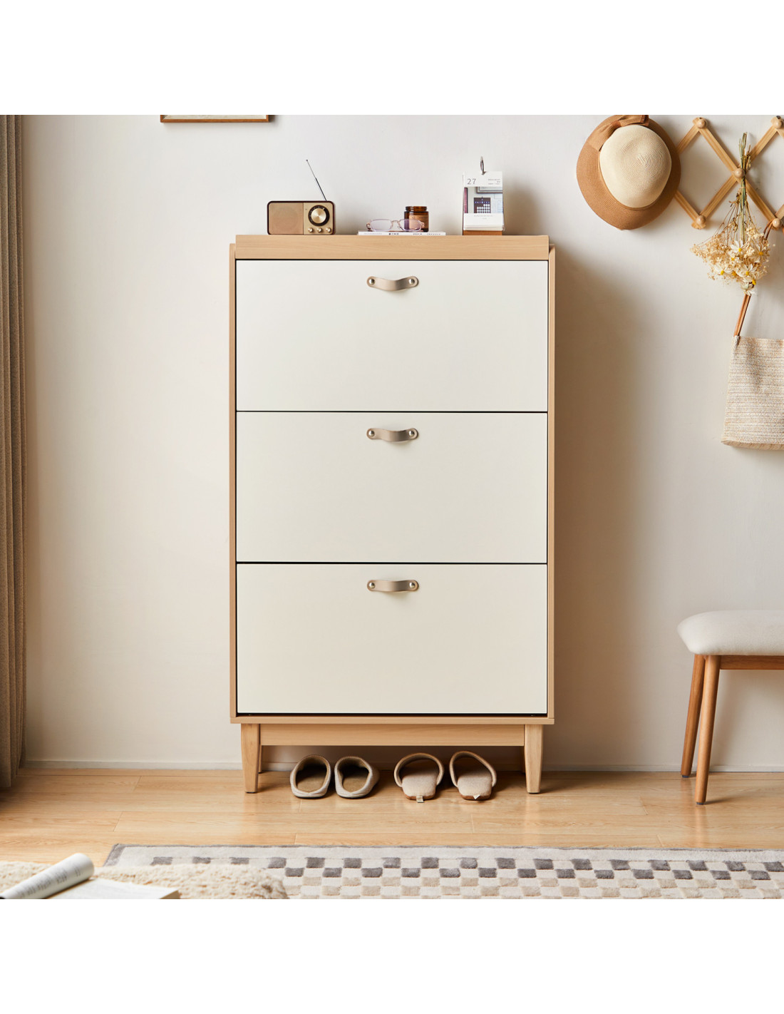 Descubre el Zapatero Mila 3 cajones, un mueble que redefine la organización con estilo en tu hogar. Fabricado con tablero de melamina y pies de madera de caucho, combina durabilidad con un diseño elegante. Cada detalle, desde los paneles laterales hasta las puertas abatibles y los estantes internos, está pensado para ofrecer funcionalidad y estética. Los herrajes de doble capa y los soportes de estante garantizan estabilidad y facilidad de uso, mientras que los mangos de imitación de cuero color marfil y aleación de zinc añaden un toque sofisticado. Con el Zapatero Mila 3 cajones, organizar tus zapatos se convierte en un placer estético y práctico, mejorando la elegancia y el orden en cualquier espacio.