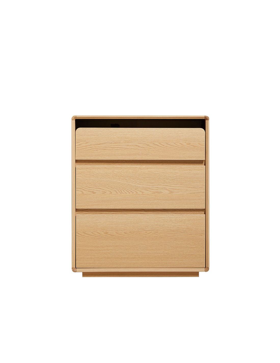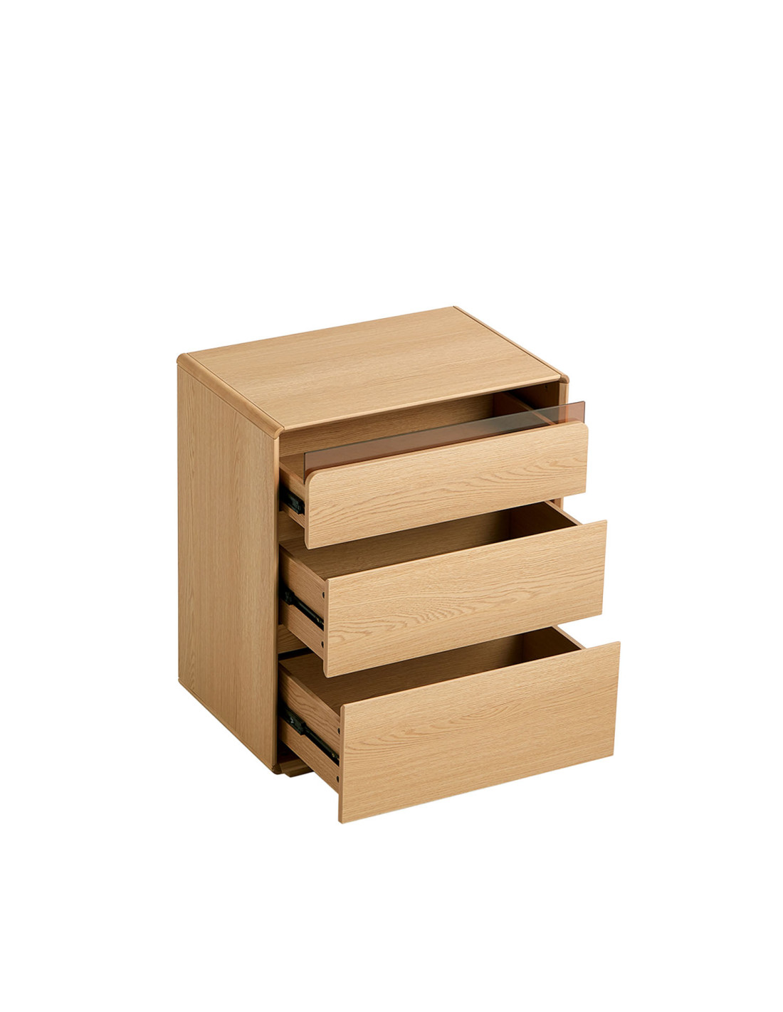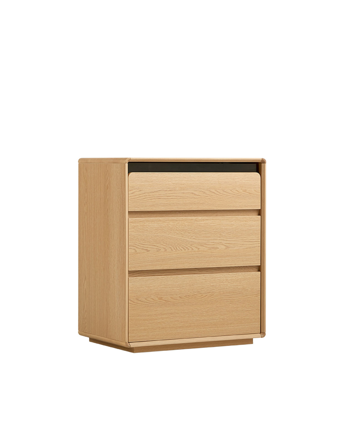 Los tres cajones amplios ofrecen un espacio ideal para guardar ropa, accesorios o artículos personales, manteniendo tu entorno ordenado y libre de desorden. Su estructura sólida y acabado cuidado garantizan durabilidad y presencia, convirtiendo a la Selka en una pieza central que no sólo organiza, sino que también realza el estilo de tu habitación.