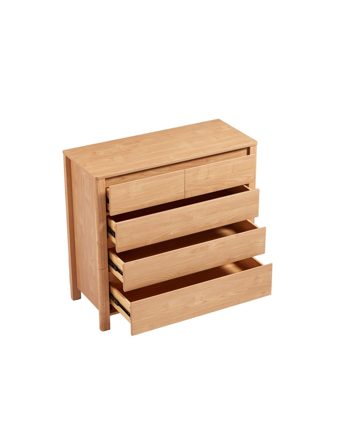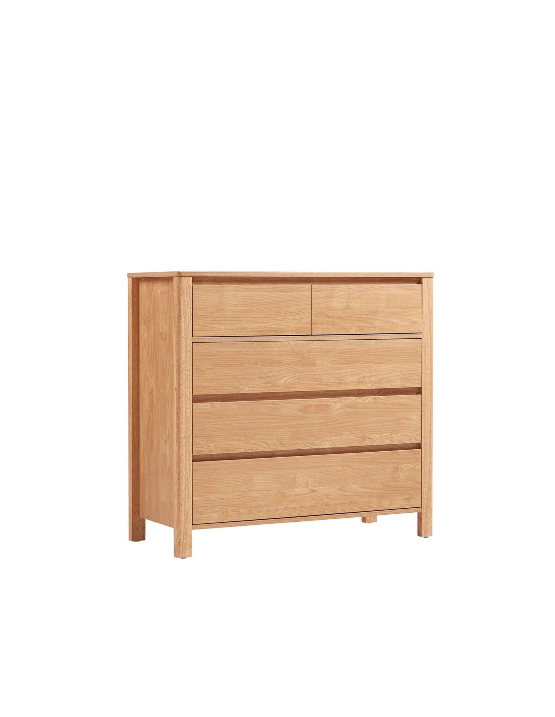 La Cómoda 5 cajones Orbit es la solución perfecta para mantener su espacio ordenado y elegante. Fabricada con madera de caucho, garantiza durabilidad y resistencia, mientras que sus cajones con bordes angulados en 45° aportan un toque moderno y sofisticado. Con cinco amplios cajones, ofrece el espacio de almacenamiento que necesitas para tu ropa, accesorios y más, convirtiéndola en un mueble funcional y estilizado para cualquier habitación.
