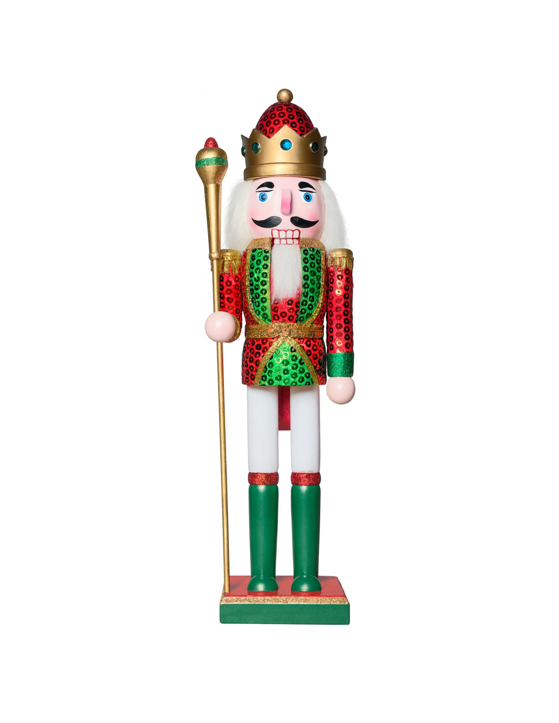 Con espíritu festivo, el Cascanueces madera 38cm brillo. Ideal para crear ambientes cálidos y festivos.