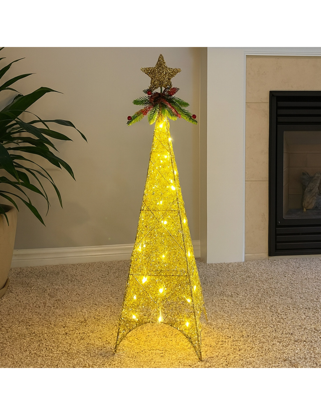 Figura navideña 60cm 30 luces LED árbol cuadrado champán