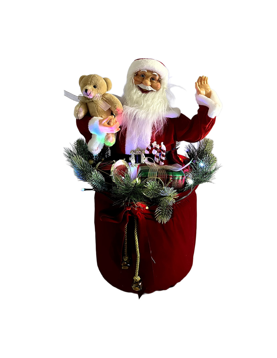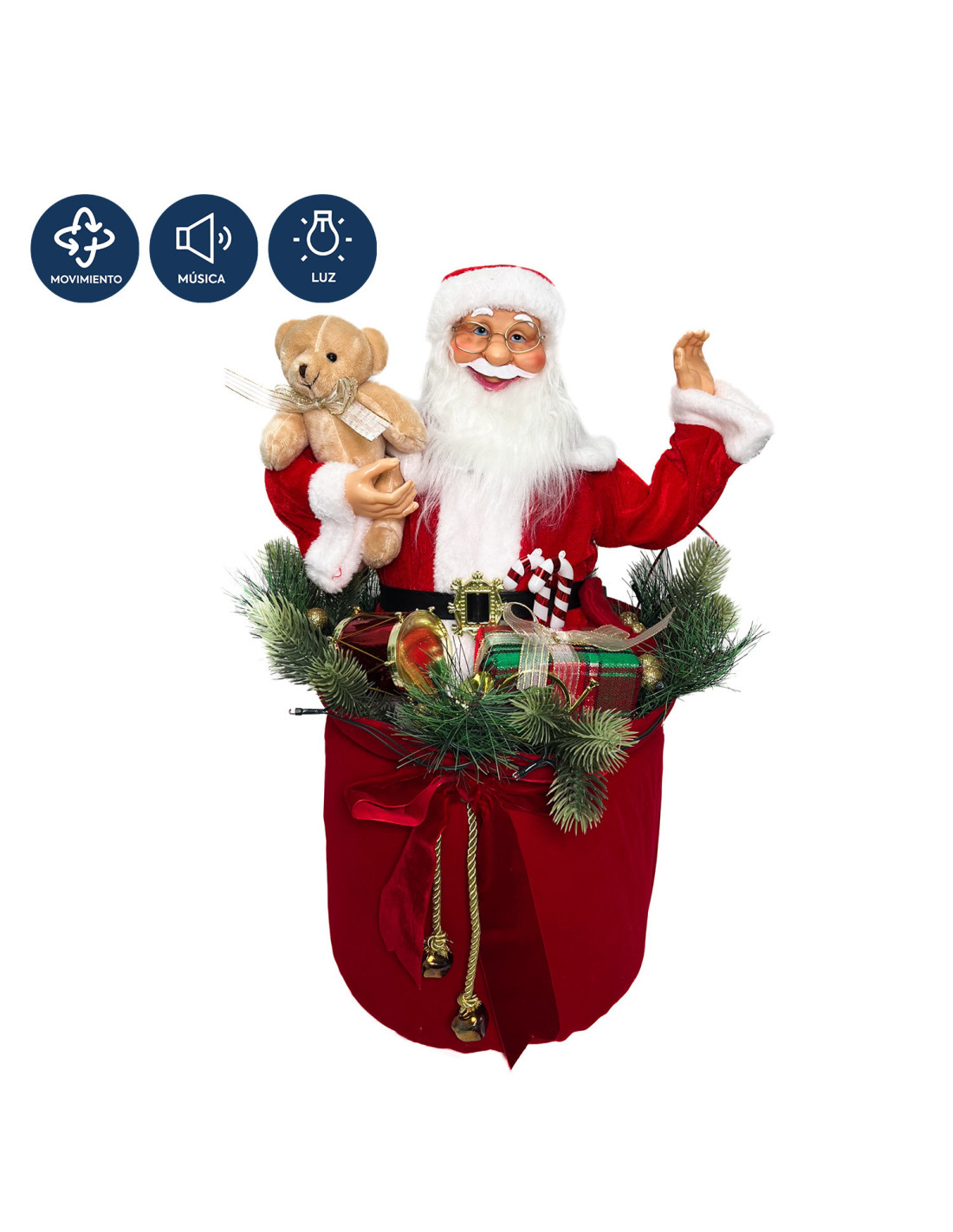 Este adorno navideño es Viejo pascuero con luz y música 60x25cm. Perfecto para complementar tu rincón navideño.
