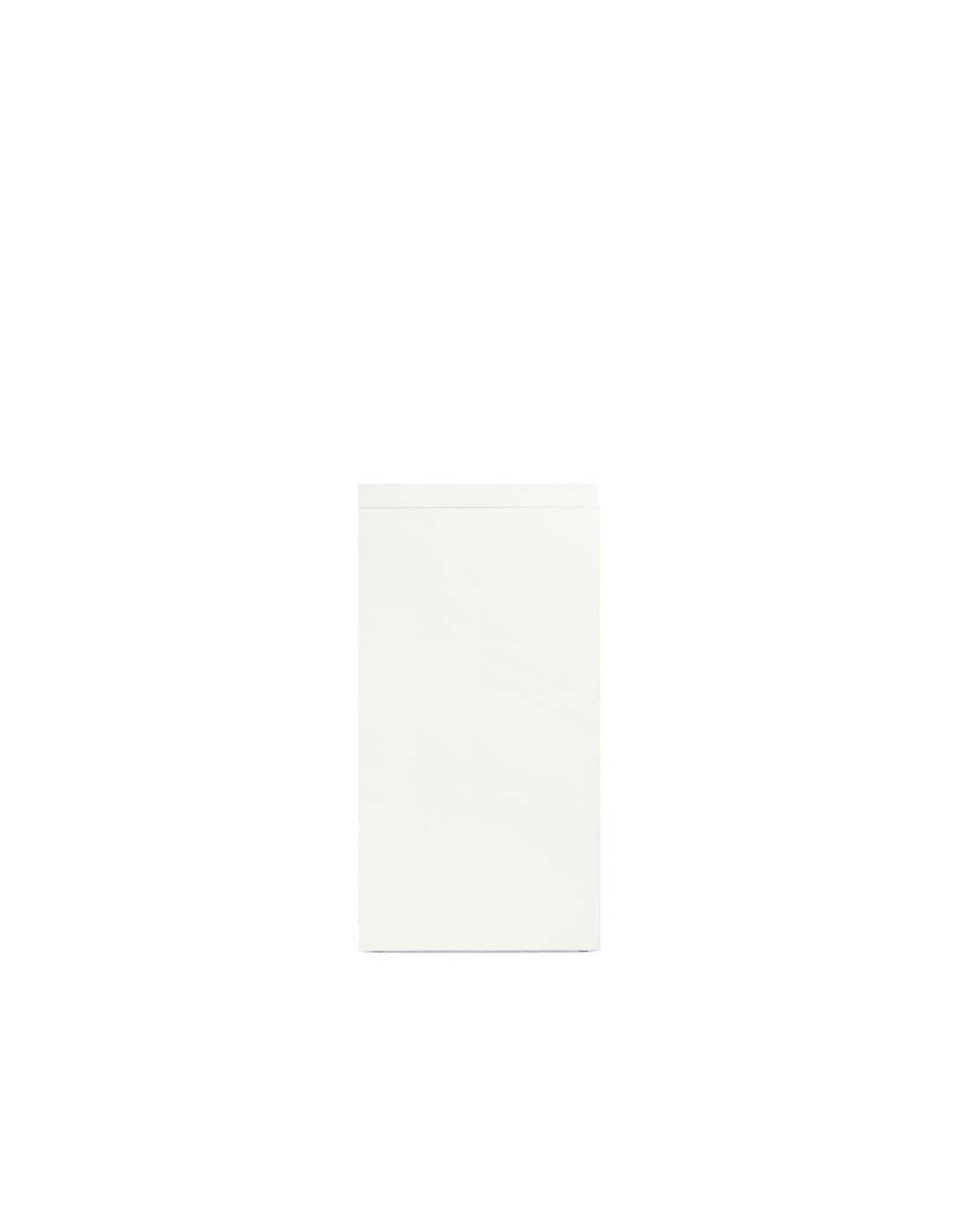 Fabricado en MDF melamina, cuenta con superficie de apoyo y 2 cajones que permiten mantener objetos de uso diario mejor organizados. Además, incorpora rieles metálicos, una característica que favorece una apertura y cierre más suaves y prácticos en el uso cotidiano.