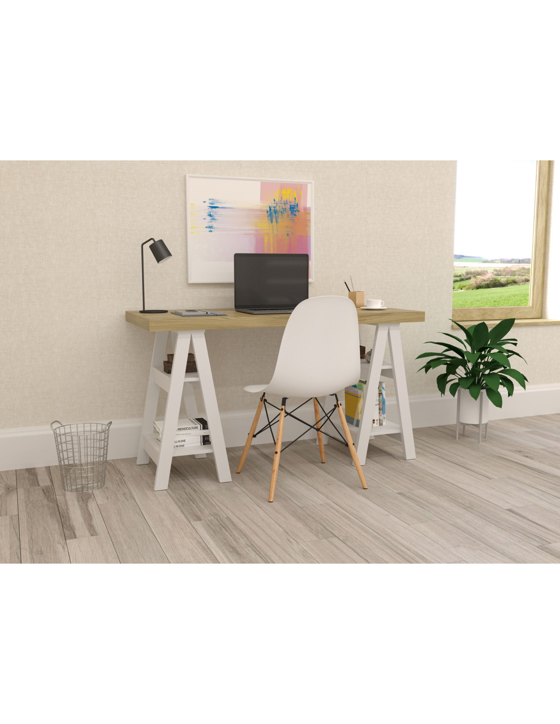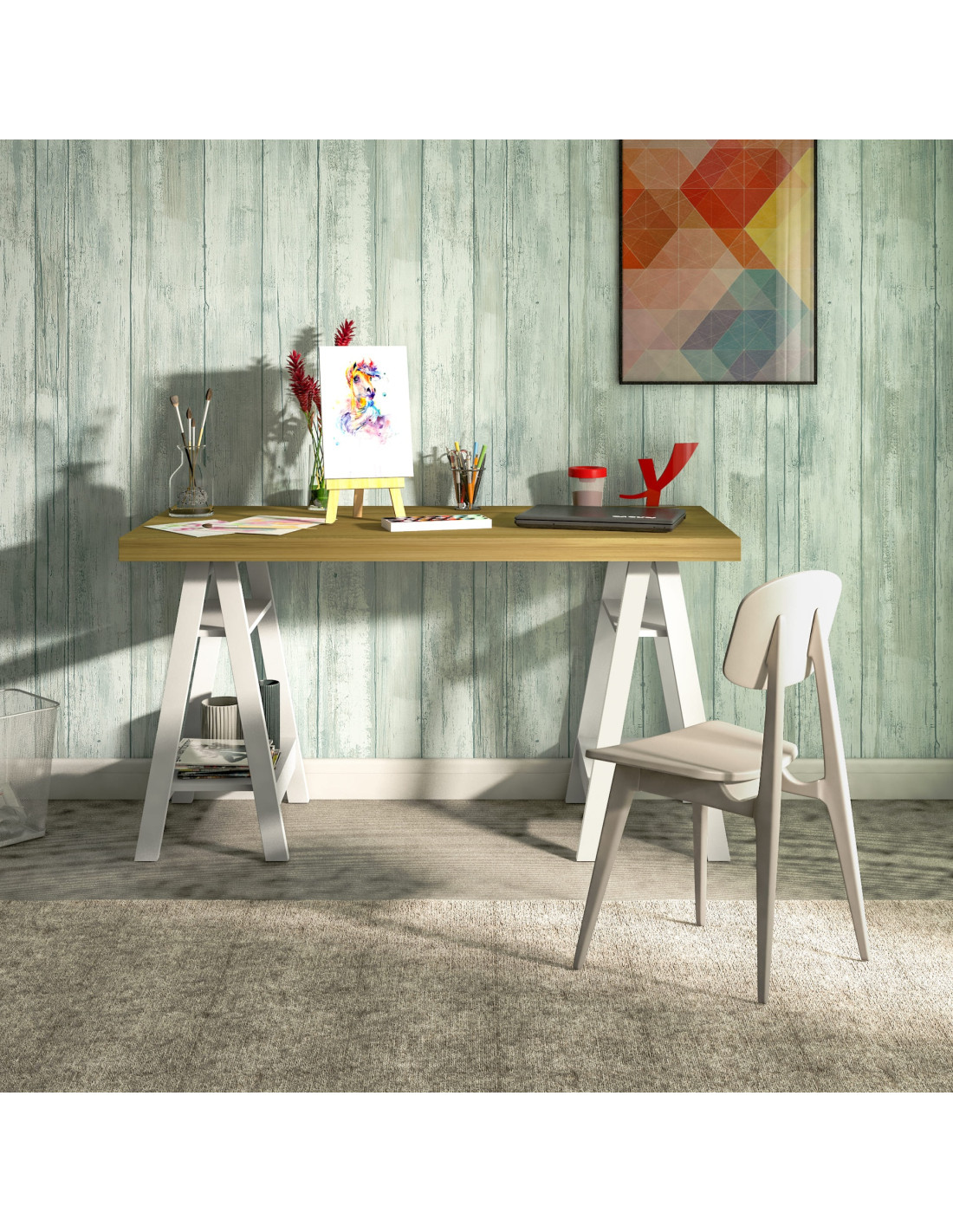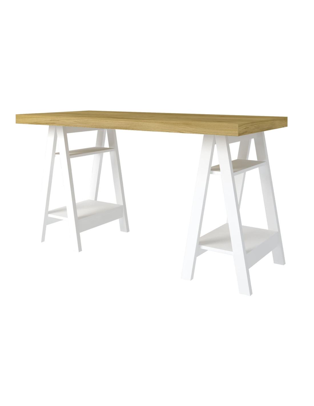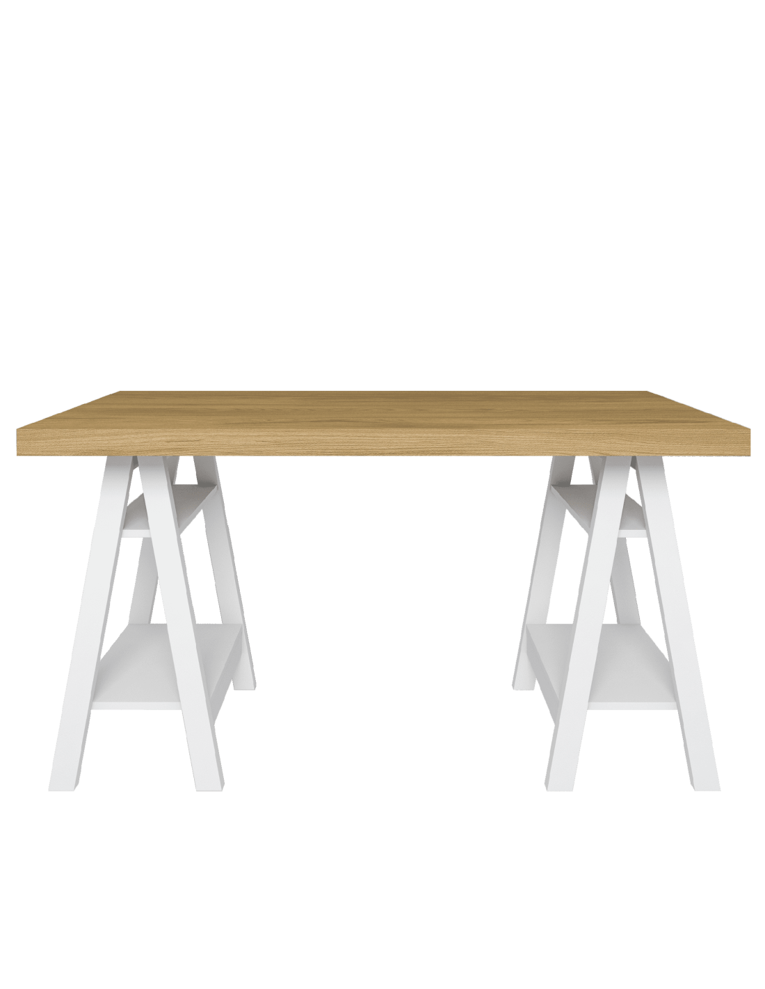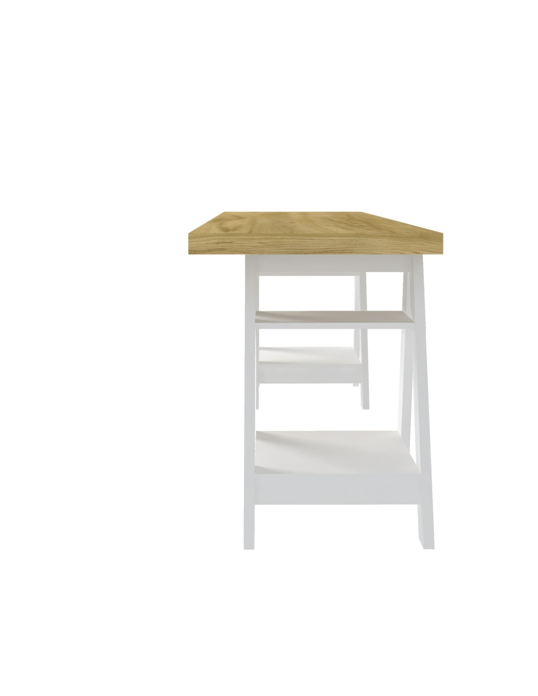 El diseño moderno del Escritorio Art está garantizado por sus patas angulares, y además, también te proporciona mucho espacio para guardar todo lo que quieras, ya que cuenta con repisas inferiores en ambos costados. Los materiales de alta calidad garantizan un producto robusto, resistente y sofisticado. Escritorio con un diseño limpio que se adapta a entornos de oficina, dormitorio, oficina en casa e incluso puede usarse como aparador.